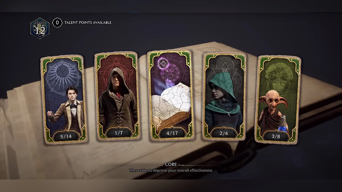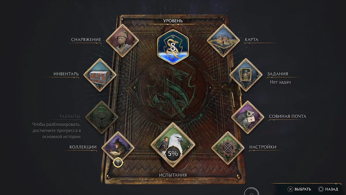 Обратите внимание, что таланты откроются далеко не сразу. Первые часы игры этот раздел будет заблокирован. Путешествуя по Хогвартсу, вы заметите людей с серебряными символами над головой — это дополнительные задания. Иногда за них дают очень много опыта.