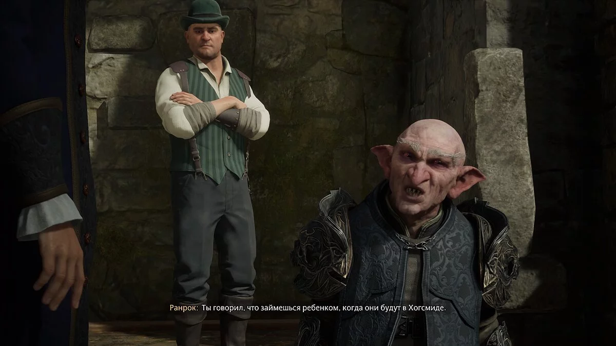 Добираемся до указанной точки и уничтожаем всех гоблинов. Разговариваем с другом. Используем Ревелио и осматриваем все подсвеченные предметы — печку, кирку, стойку с оружием, колодец, вид на деревню и картину. Общаемся с Себастьяном.
