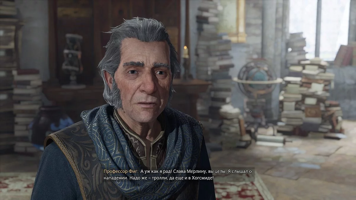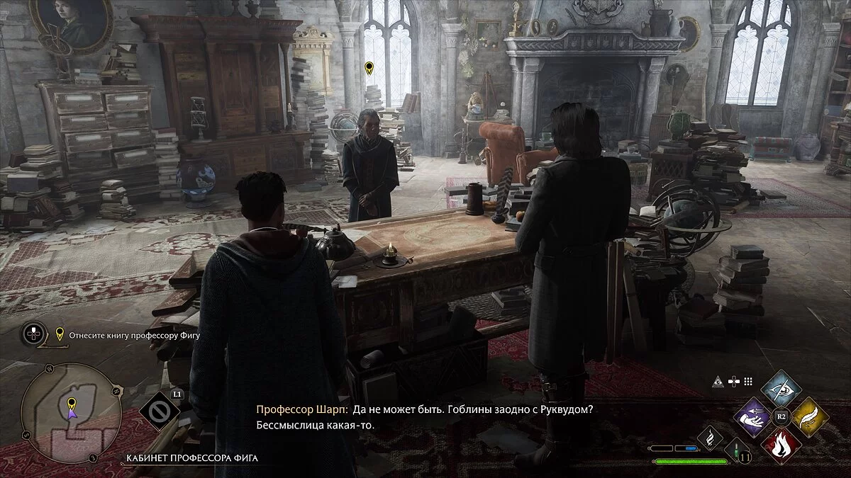 Выходим из спальни и получаем совиную почту. По маркеру добираемся до профессора Фига.