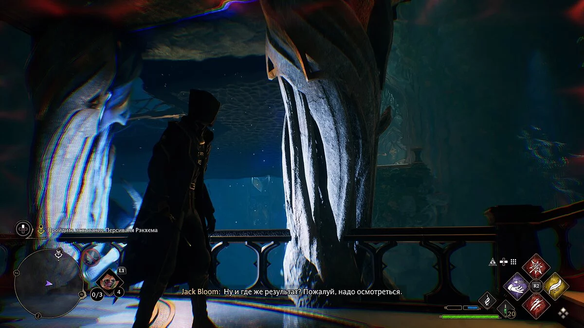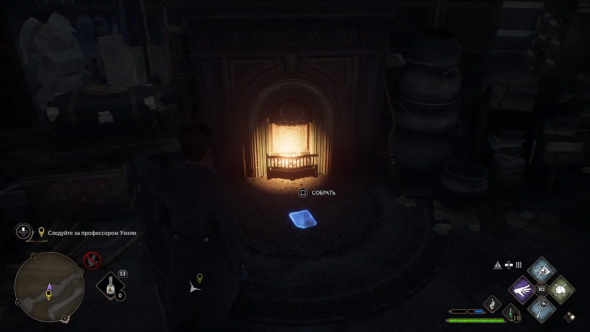 Отправляемся в Большой зал и встречаемся с Глэдвином Муном. Собираем статуэтку демимаски. Следуем за смотрителем. Мужчина научит героя заклинанию Алохомора и попросит отыскать луны демимаски. Активируем невидимость и поднимаемся наверх. Попутно можем собрать несколько страниц «Руководства». По маркерам доходим до предметов и забираем их. Возвращаемся обратно к Глэдвину.