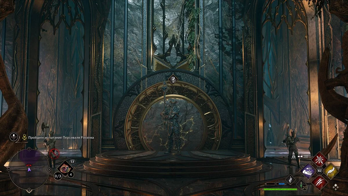 Становимся напротив троих рыцарей, чтобы свечение соединилось в одной точке. Уничтожаем всех врагов. Снова отражаем атаки врагов и доходим до голубого света. Проходим через портал и осматриваем зелье возле Омута памяти. Наблюдаем за видеороликом, в котором знакомимся с Ранроком.