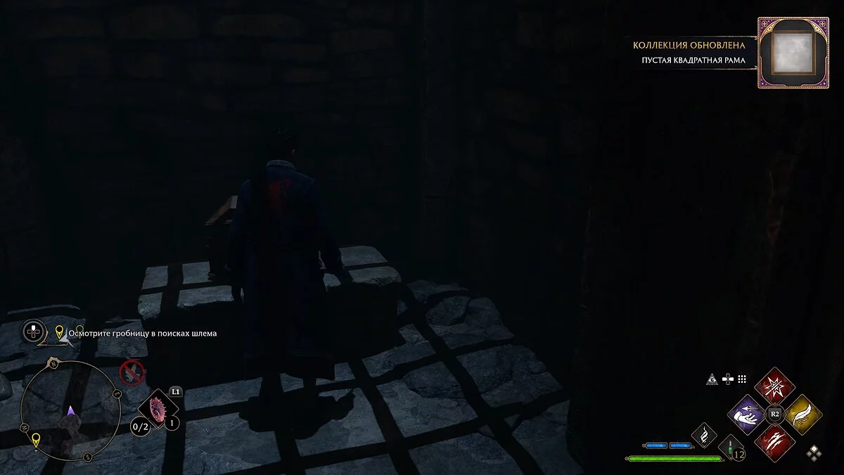 Проходим через стеклянный портал в крипту и устанавливаем вторую часть картины. После разговора с Себастьяном миссия будет окончена.
