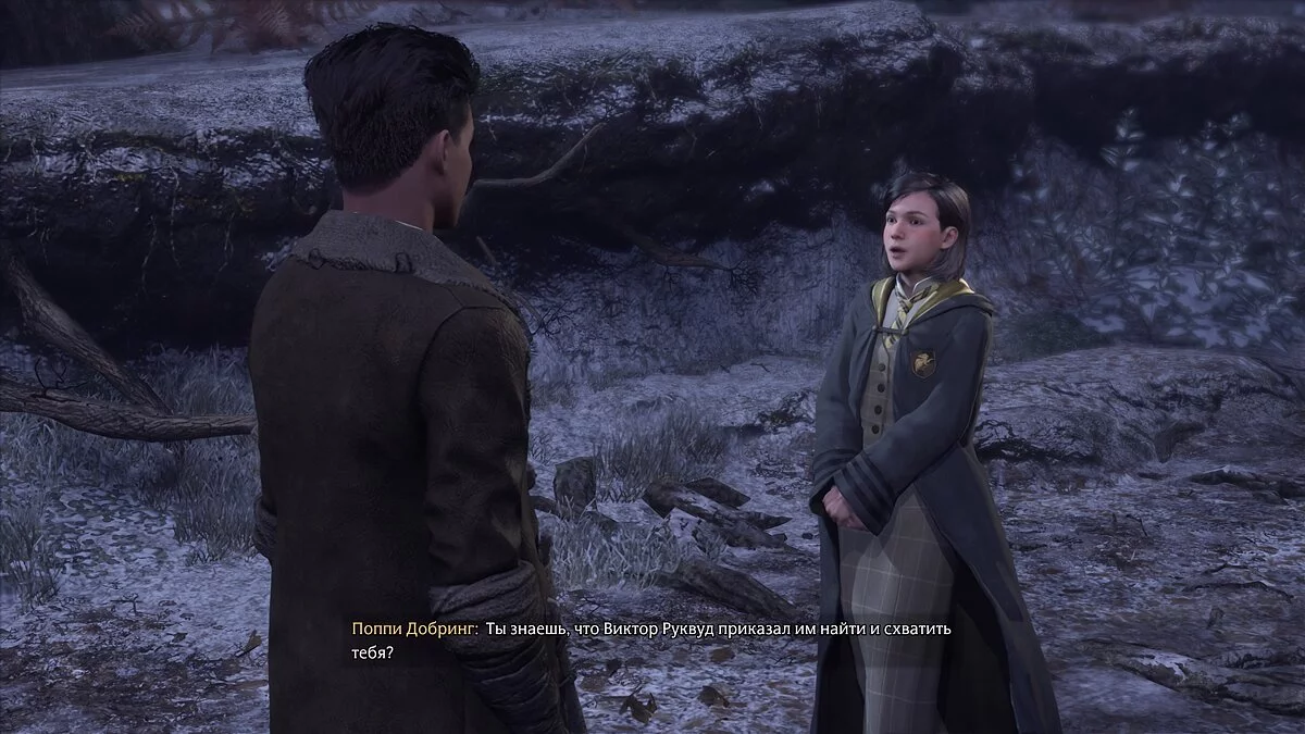 Отправляемся на север от Хогвартса и общаемся с Поппи Добринг. Следуем за девушкой.