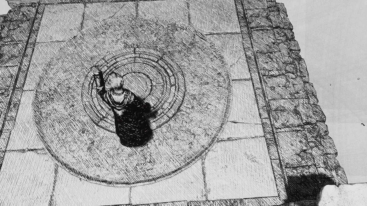За углом находим сундук и продолжаем двигаться за профессором. Фиг восстановит мост. После этого перебегаем через него и осматриваем рисунок на стене и статую.