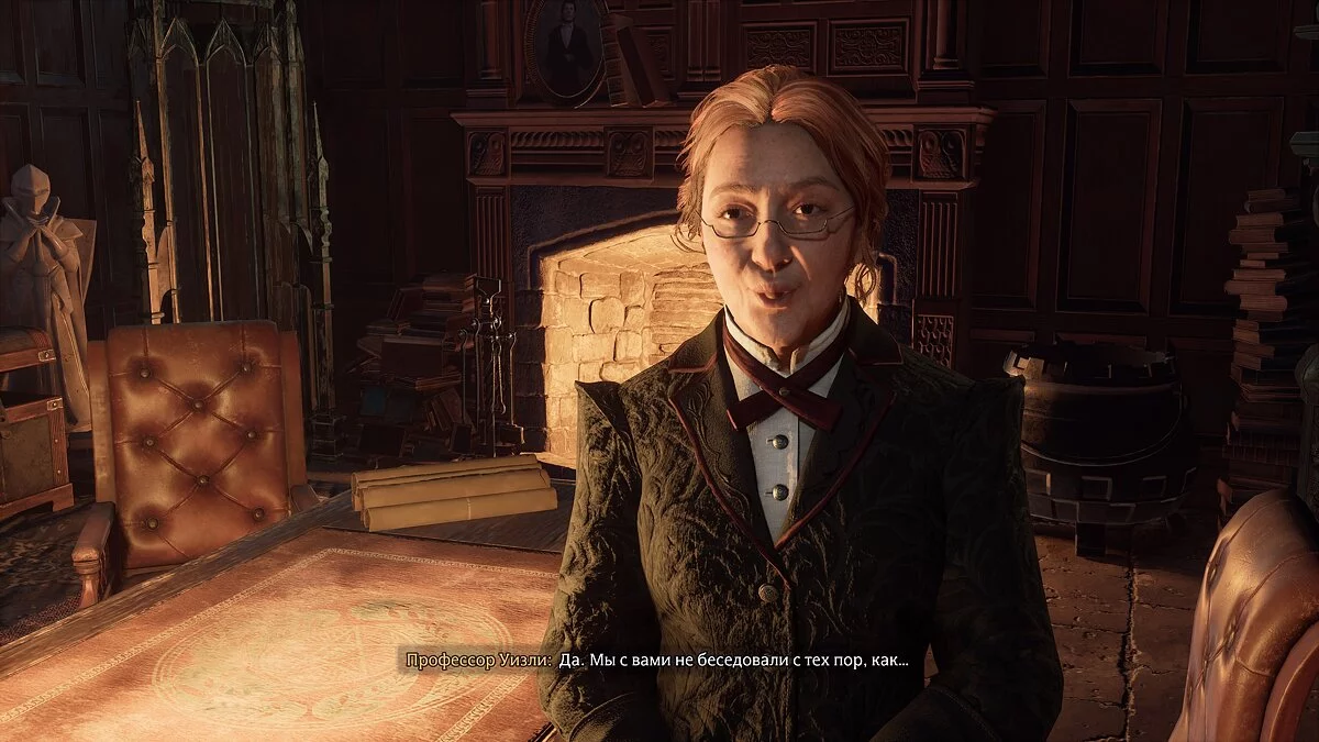 Добираемся до кабинета трансфигурации и общаемся с профессором Уизли. После разговора с преподавателем сюжетный квест завершится.