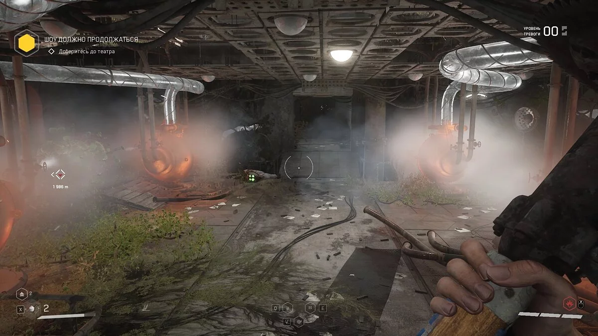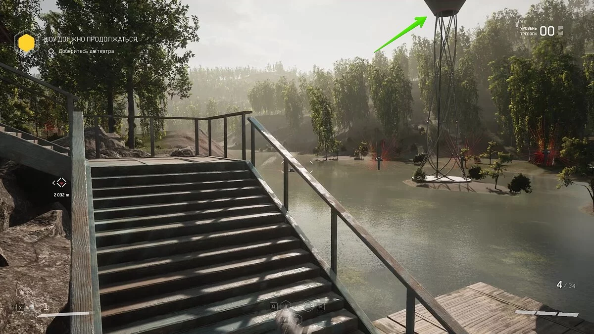 Чтобы попасть в этот полигон, сперва вам придётся запустить модуль «Гриф», который удерживают корни побегов. Для этого отправляйтесь к реке и найдите вход в подводный коллектор. Сверху его не видно, придётся нырять под воду.