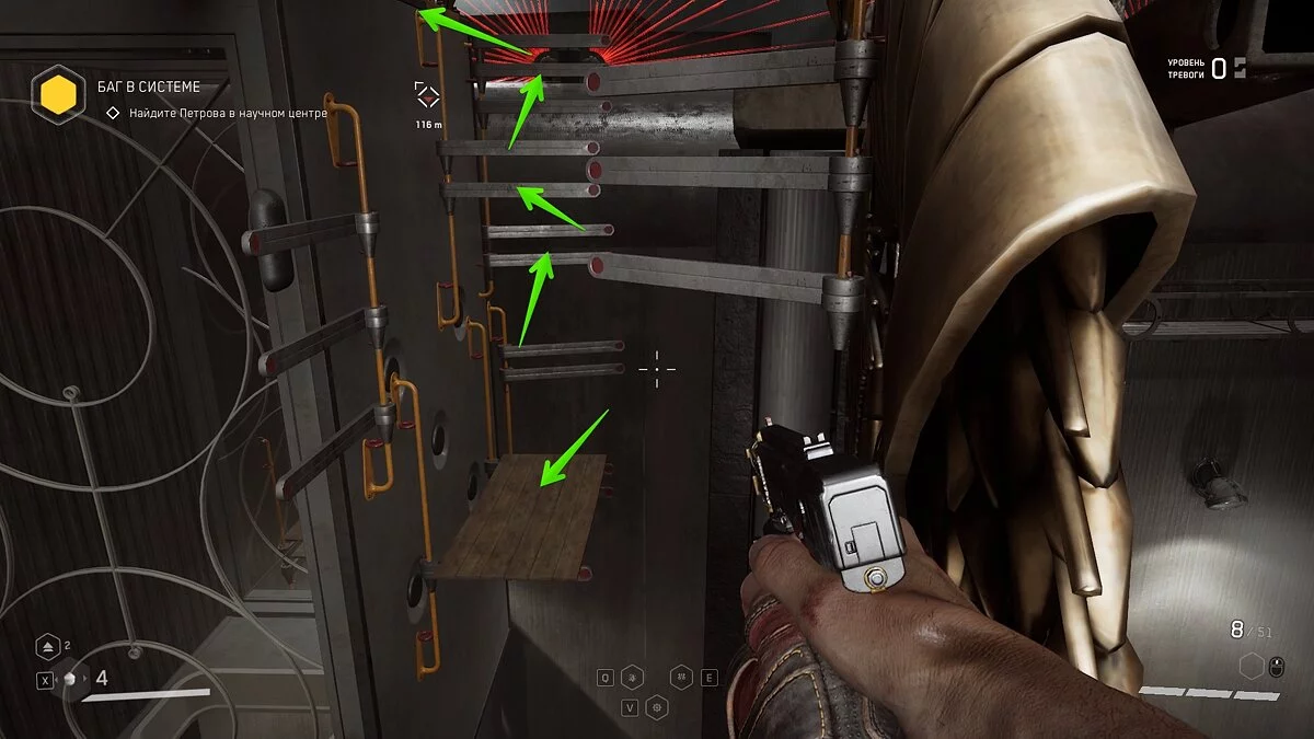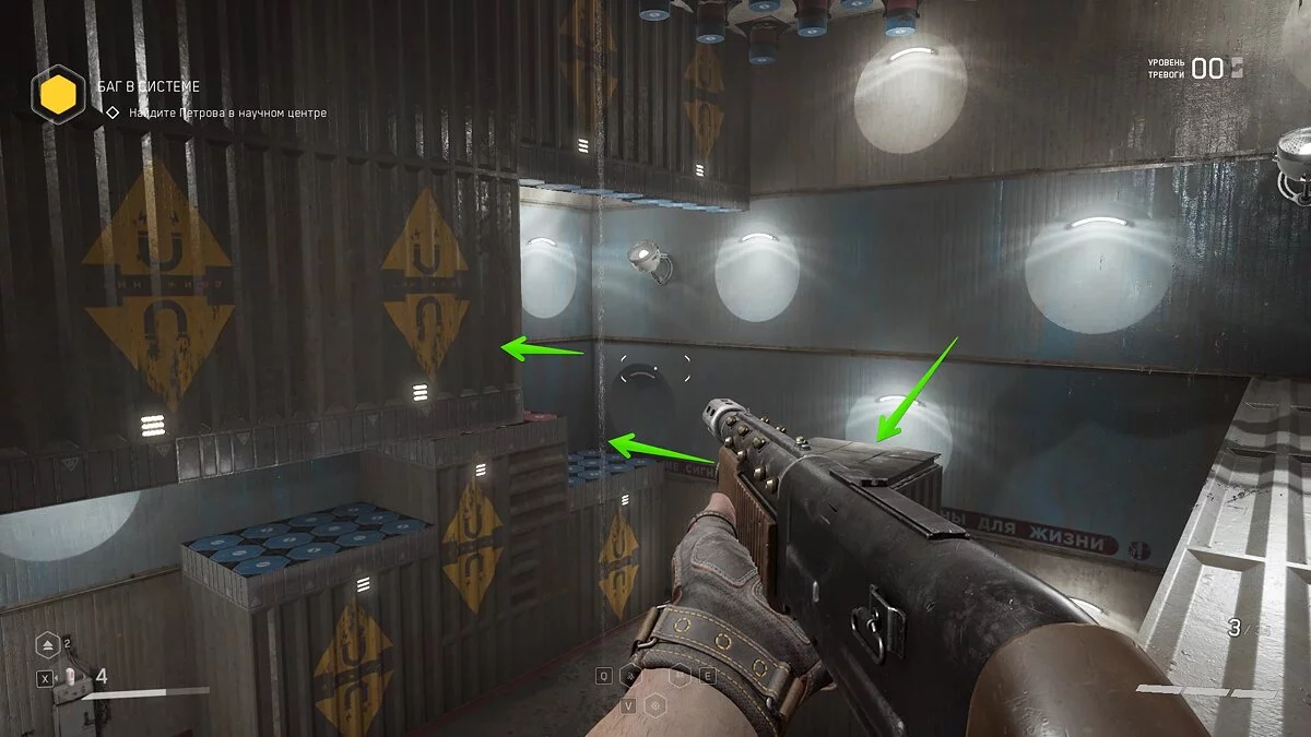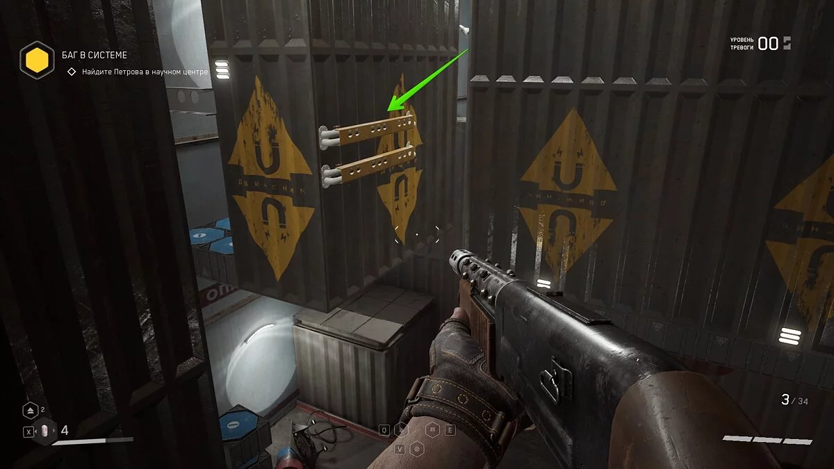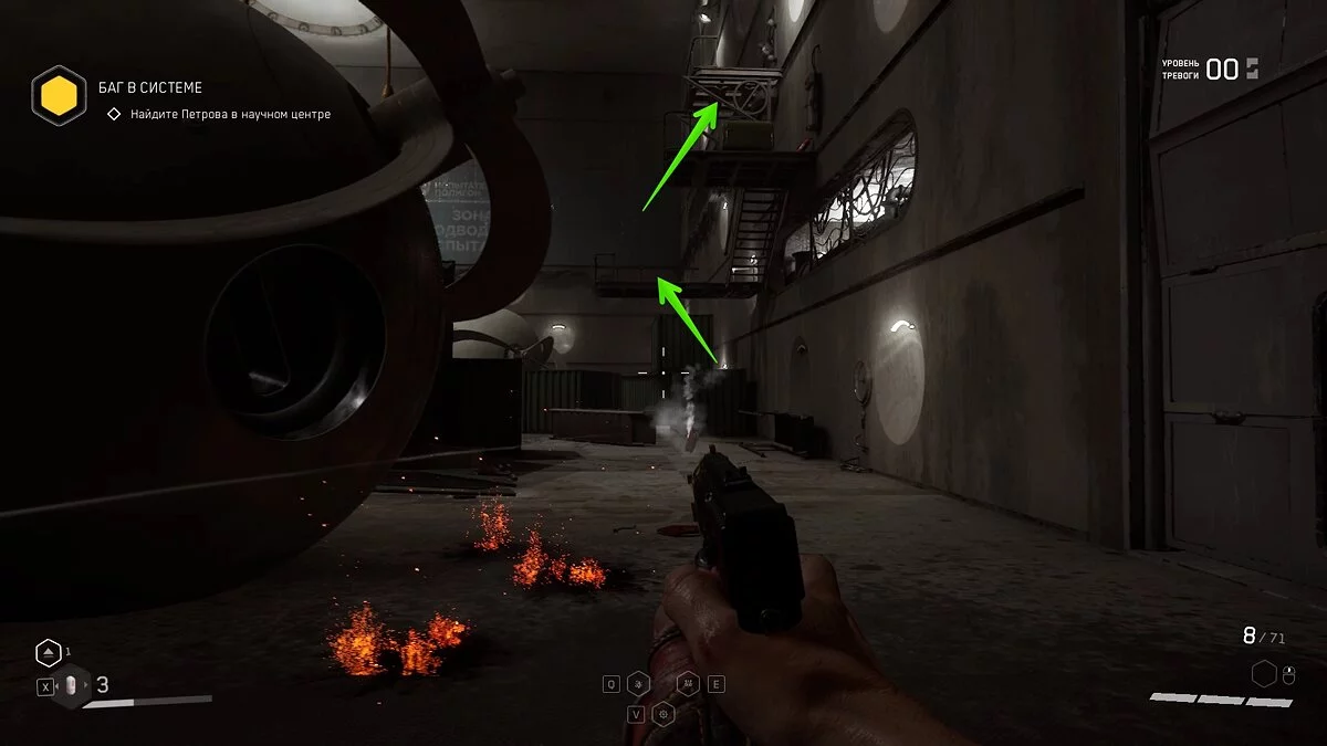 На протагониста нападут враги, поэтому не теряйте бдительность. Найдите контейнеры, над которыми есть лестница. Заберитесь наверх.