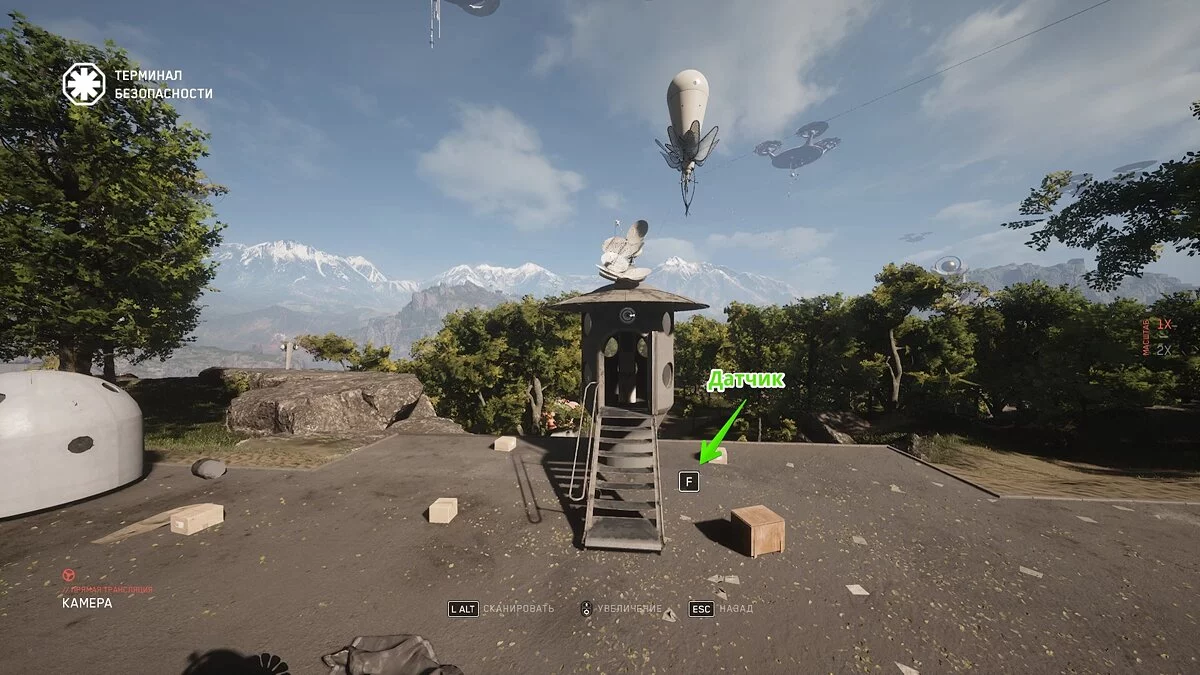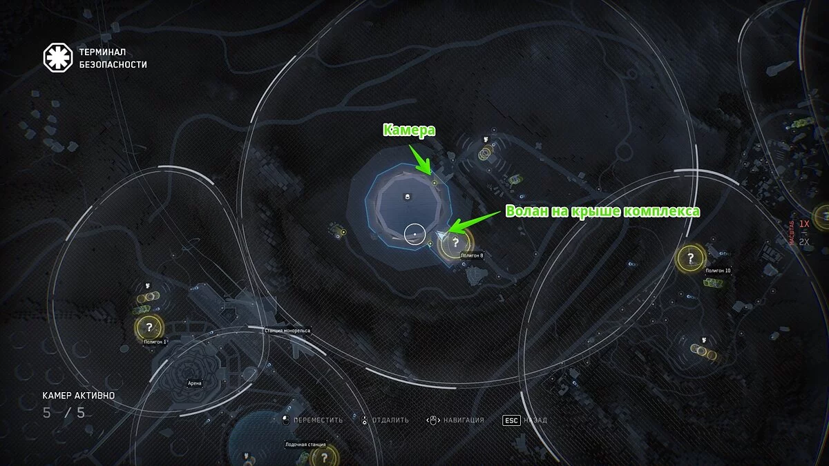 Чтобы попасть в этот полигон, сперва придётся отыскать несколько устройств «Волан» и активировать специальные датчики. Мы указали их местоположение на скриншотах ниже.