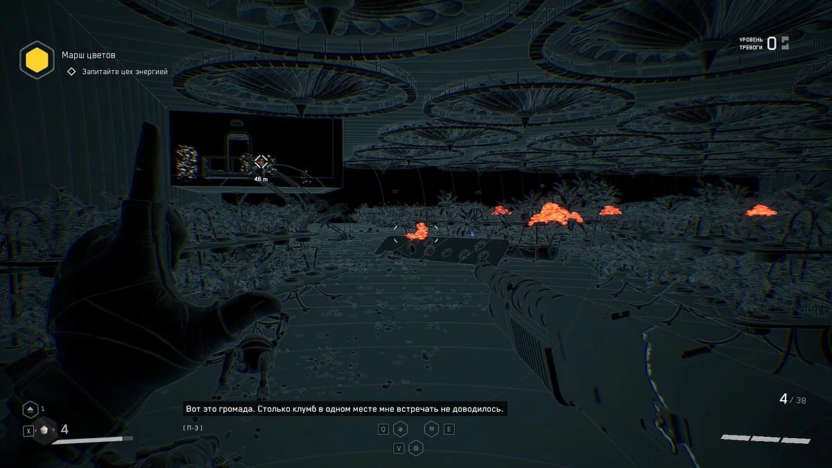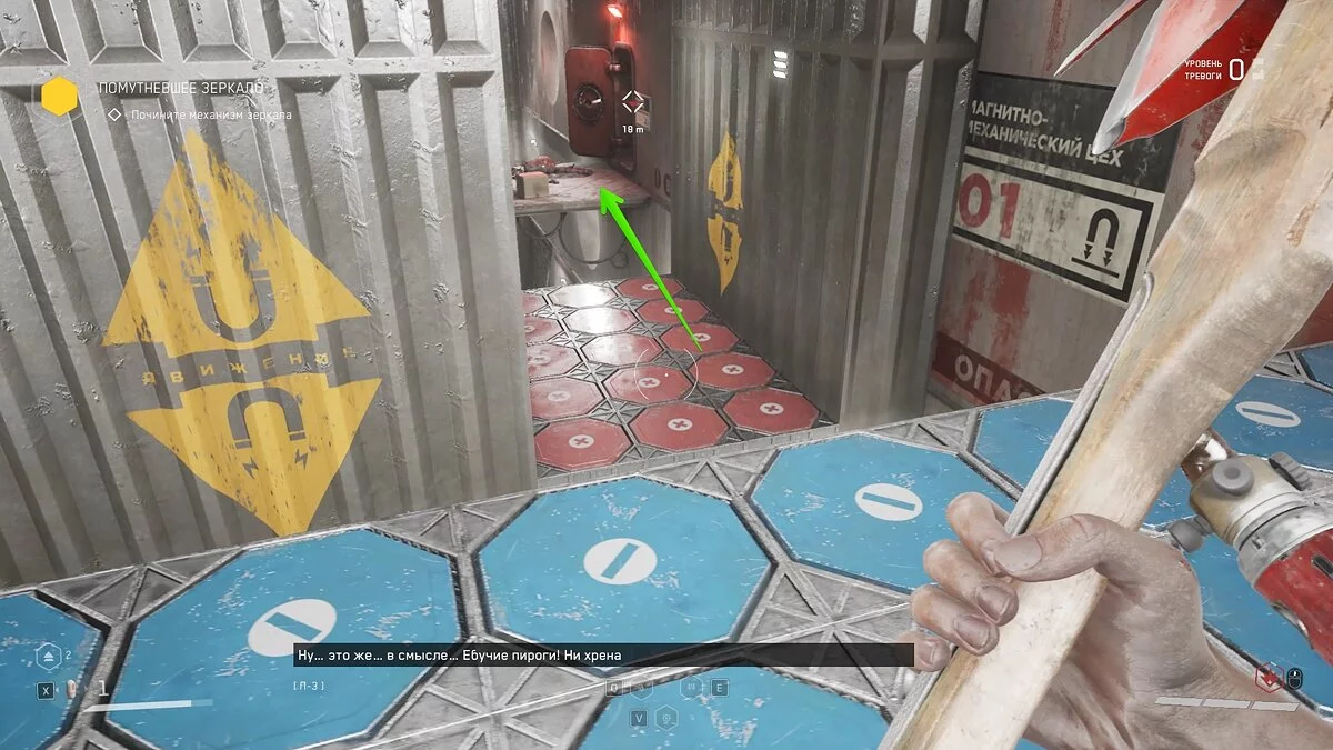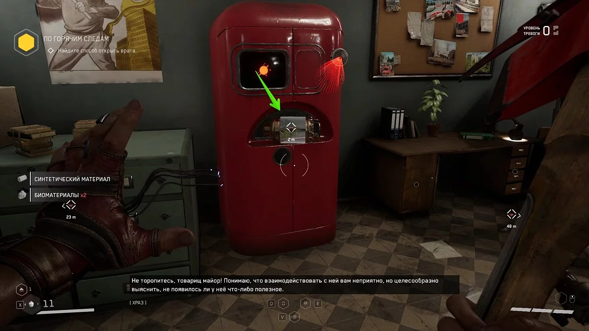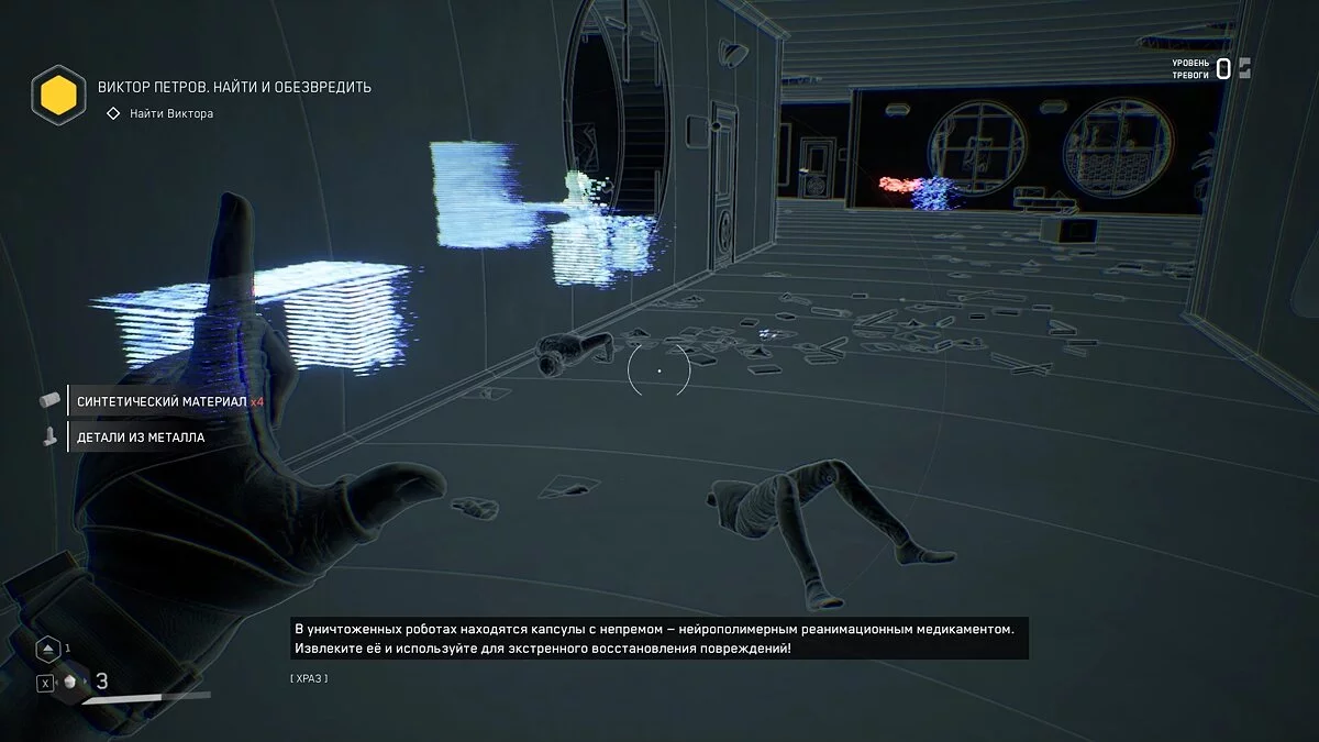 Робот Терешкова введёт вас в курс дела и научит пользоваться сканером. Это основной геймплейный элемент, к которому вы будете постоянно обращаться по мере прохождения Atomic Heart. Сканер может подсветить не только полезные предметы или врагов, с его помощью также можно обнаружить предметы для задания или людей, с которыми можно пообщаться. Все они разделены на три цвета: