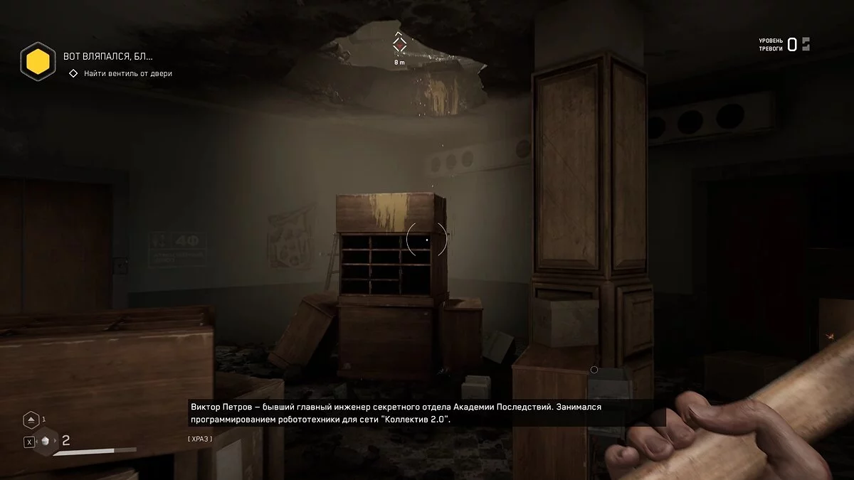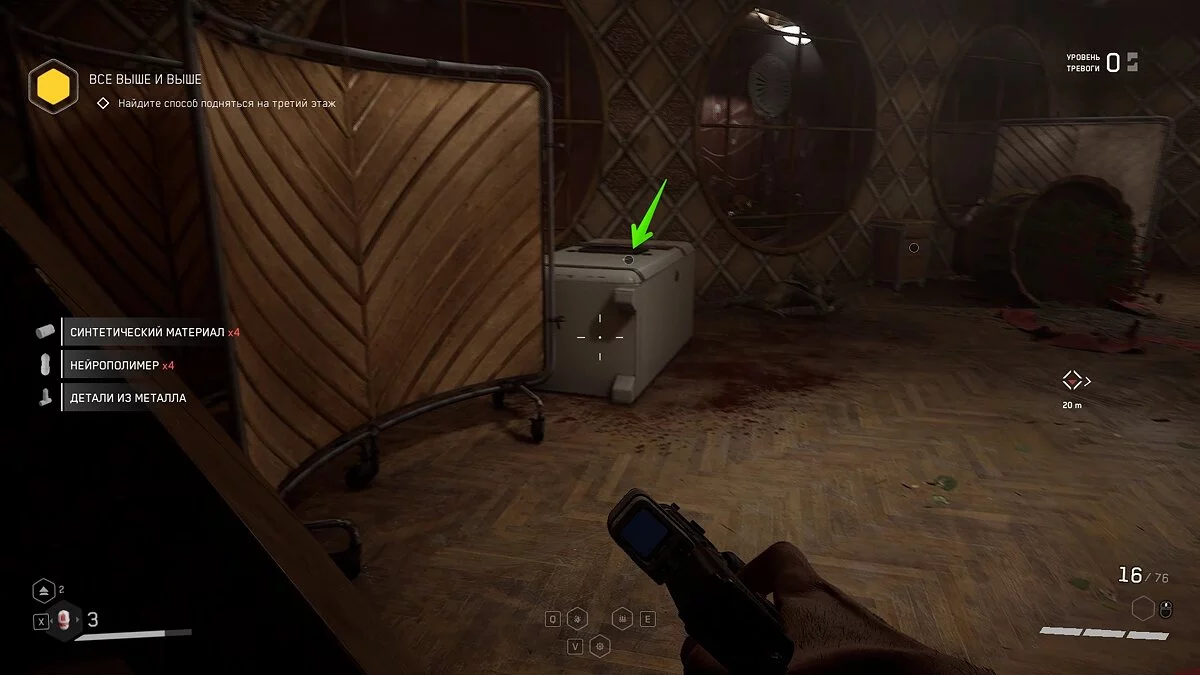 Не спешите покидать этот этаж. Осмотрите все комнаты, чтобы найти аудиозапись и ресурсы для крафта.