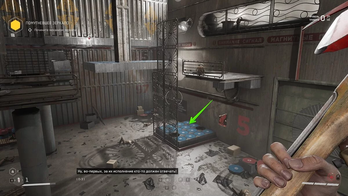 Взаимодействуйте с новым электронным замком, затем поговорите с трупом военного. С этого момента вам часто будут встречаться мертвые, с которыми можно беседовать. Не забудьте осмотреть сундук в комнате отдыха, чтобы получить чертёж топора «Лиса». Вернитесь обратно и отыщите ещё один труп, рядом с которым есть схема для открытия замка. Активируйте фуникулёр, садитесь в кабинку и смотрите кат-сцену.