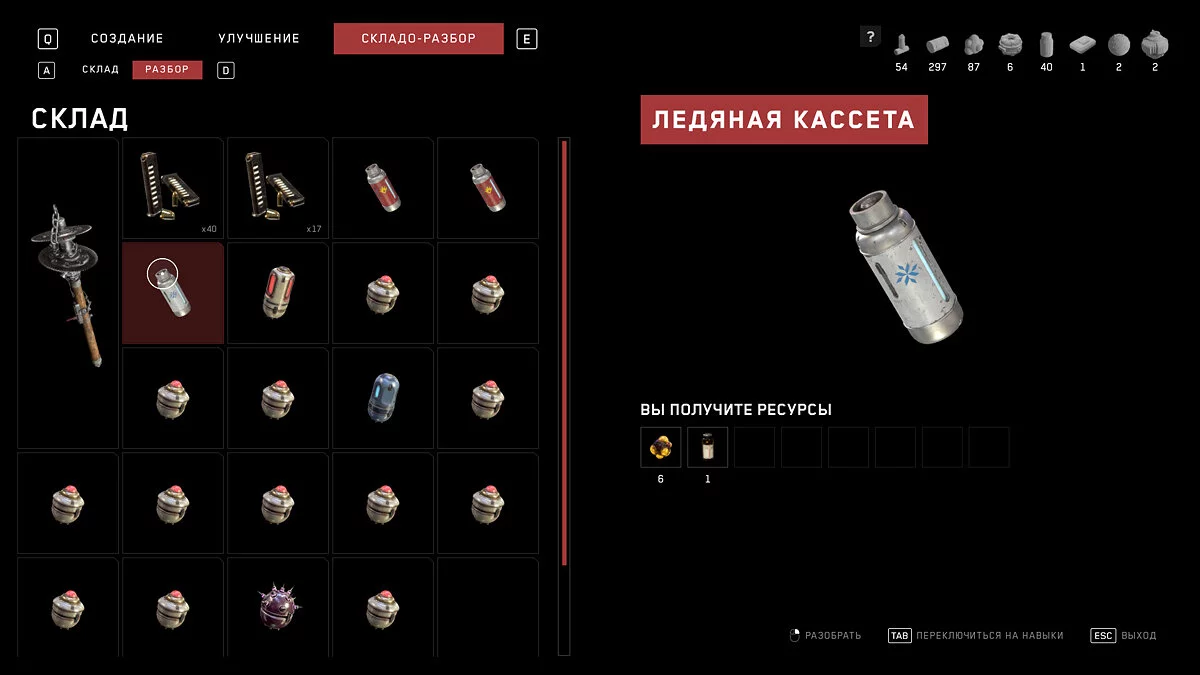 Поэтому в случае разбора расходников, будь то капсулы с непремом или патроны, игрок получает столько ресурсов, сколько потратил бы на их создание. Оружие также можно разбирать без опаски — вернутся не только ресурсы, потраченные на крафт самого оружия, но и все материалы, потраченные на апгрейды.
