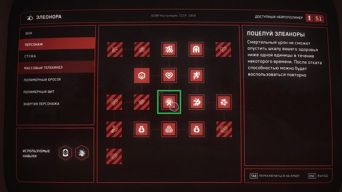 После покупки навыка «Поцелуй Элеоноры» разблокируется доступ и к остальным навыкам ветки. До нужного вам навыка необходимо приобрести только один — «Объёмные кассетники», стоимостью 27 единиц нейрополимера.