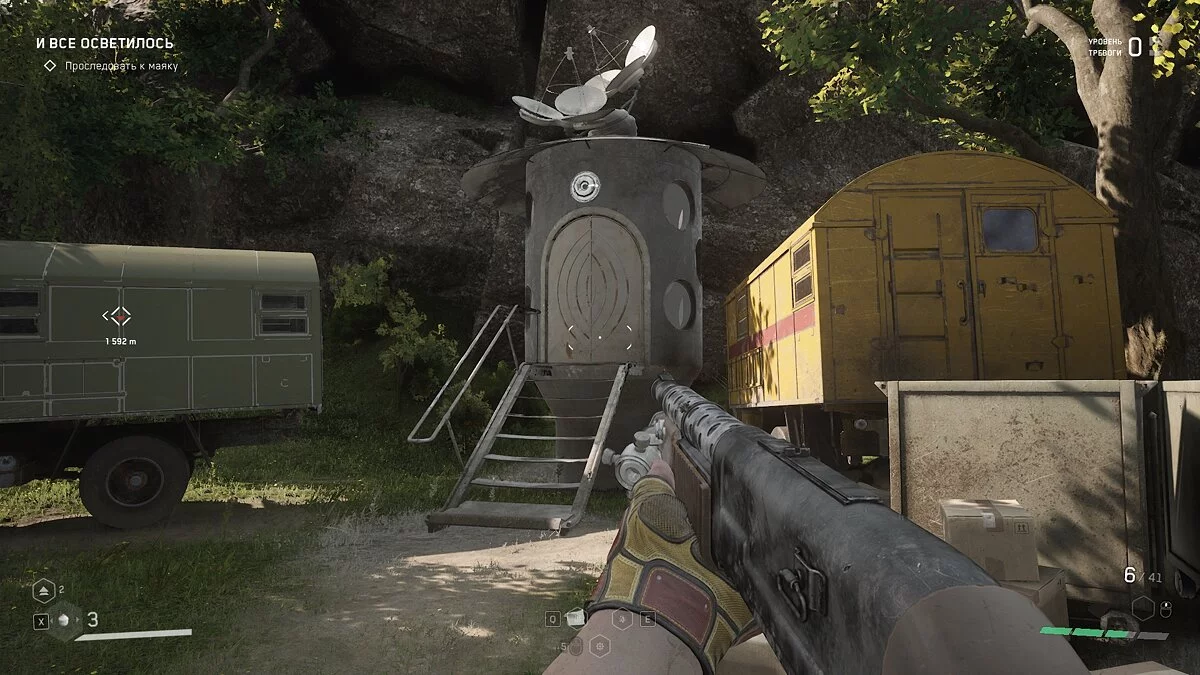Встаньте на круглую платформу у основания башни, чтобы подняться наверх. Наверху с вами свяжется баба Зина и предложит встретиться. Отправляйтесь к ней по маркерной отметке. Далее бабуля даст герою небольшое устройство, с помощью которого он сможет взламывать башни и подключаться к ближайшим камерам. Возвращаемся обратно и пробуем новую механику. На клавишу F (ПК-версия) вы можете взаимодействовать с закрытыми релейными замками. Запомните эту особенность, так как она пригодится в открытом мире.