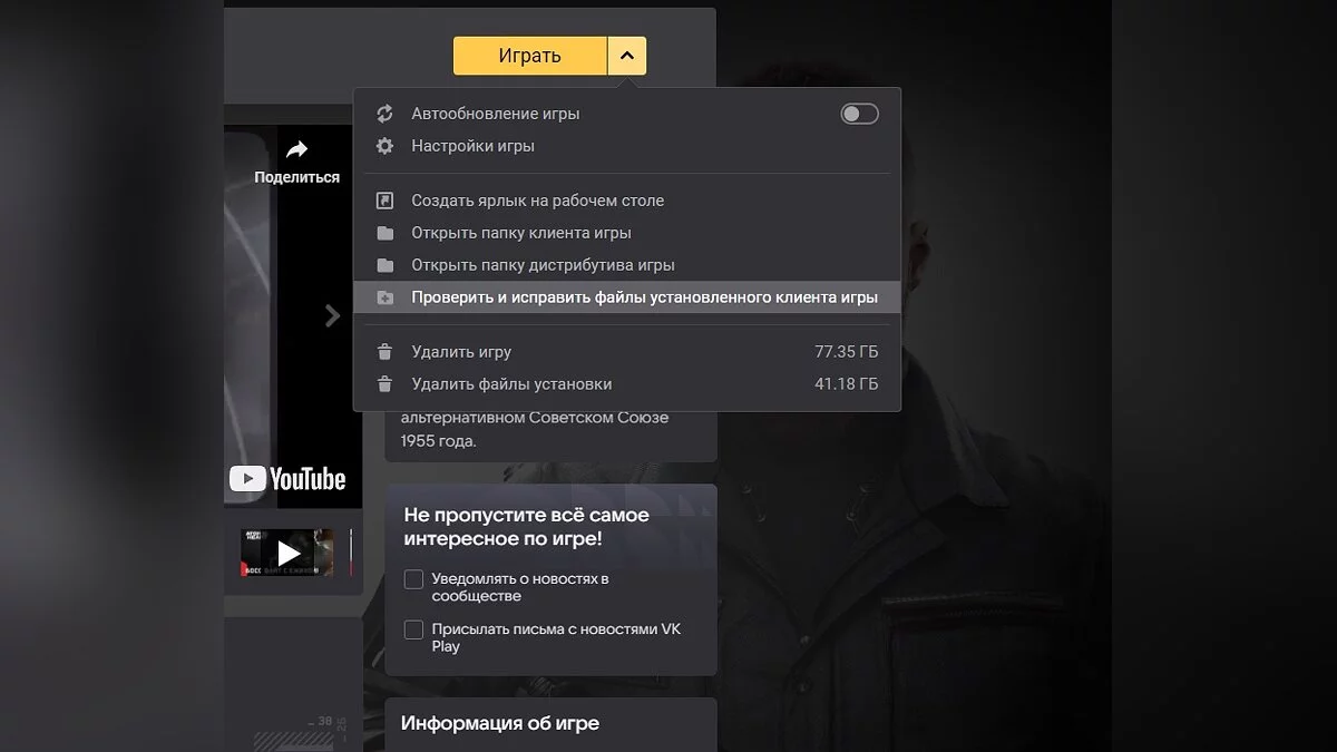 Многие ошибки связаны с поврежденными или отсутствующими файлами игры. Чтобы решить большинство проблем, достаточно проверить файлы игры через клиент VK Play или Steam.