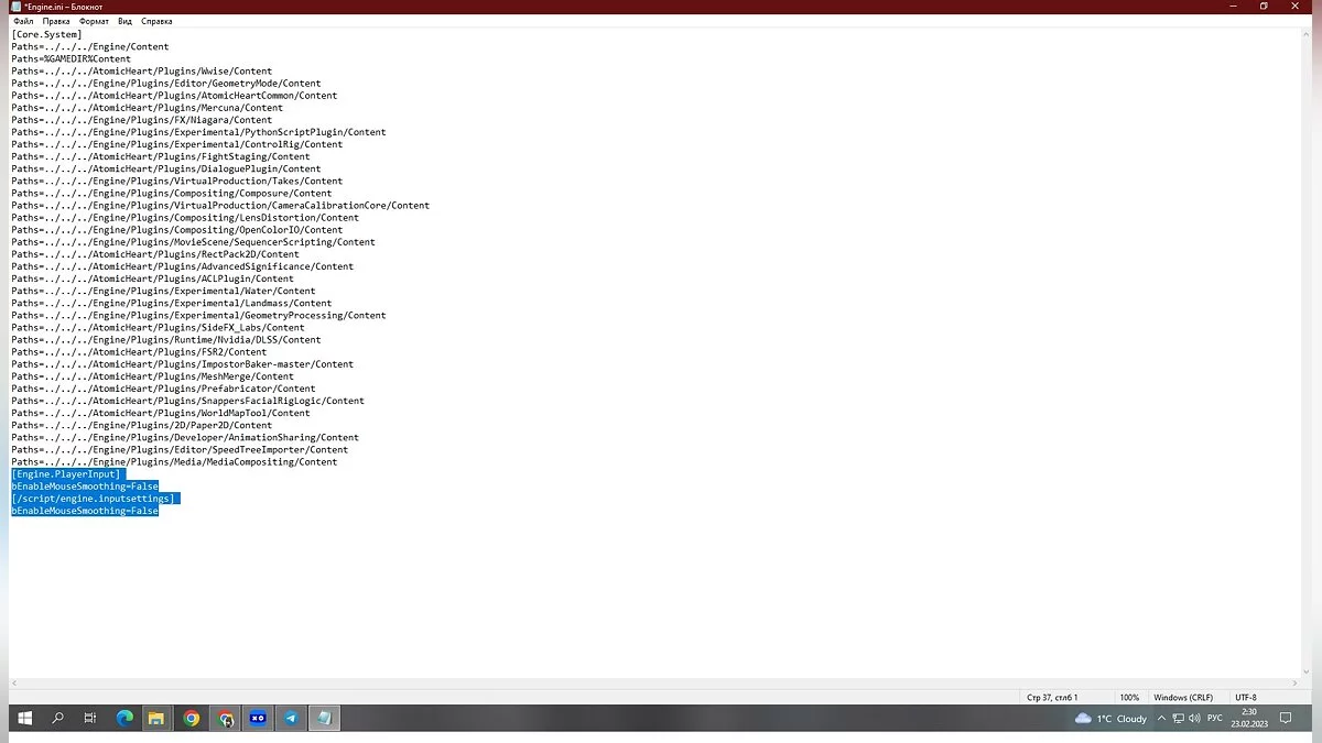 - Откройте «Engine.ini» с помощью блокнота или любого текстового редактора;