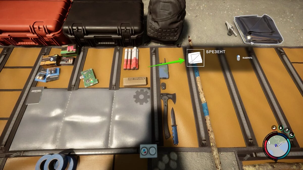Откройте инвентарь и выберите брезент. Он находится в правом верхнем углу. Разместите его на любой открытой местности.
