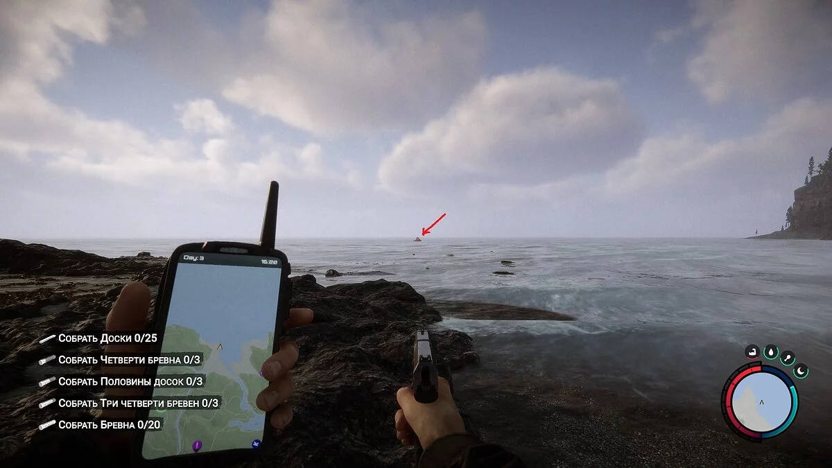 Огнестрельное оружие будет, пожалуй, одним из самых эффективных на старте игры, да и в целом в ходе игрового процесса. Пистолет найти несложно, особенно учитывая тот факт, что на карте подсвечено его местоположение фиолетовым маркером. Находится предмет в надувном плоту, который плавает в бухте.