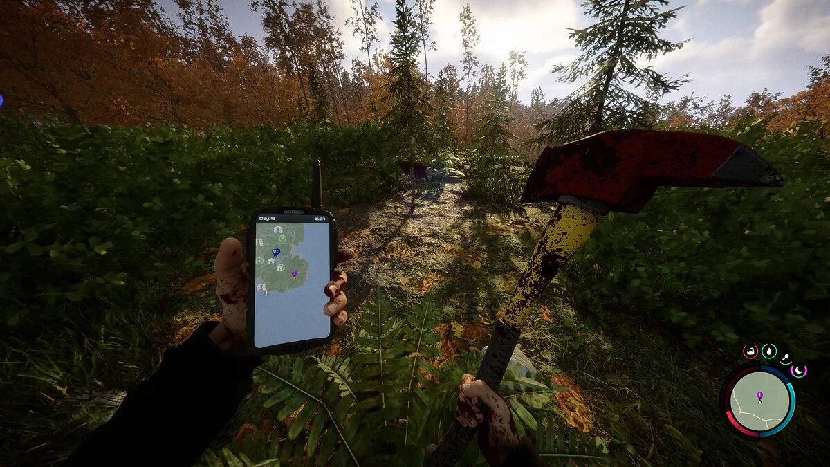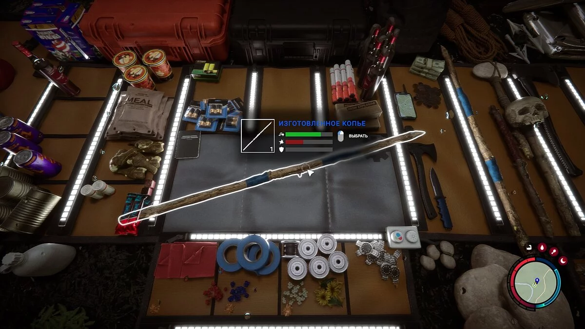 Отличный инструмент для быстрой заготовки дров, а также прекрасное оружие. Найти его можно, войдя в подземный бункер, отмеченный на карте (здесь же вы впервые могли найти 3D-принтер). Стоит отметить, что для этого понадобится отыскать вторую ключ-карту, которая станет доступна только после получения лопаты и открытия закопанного бункера.