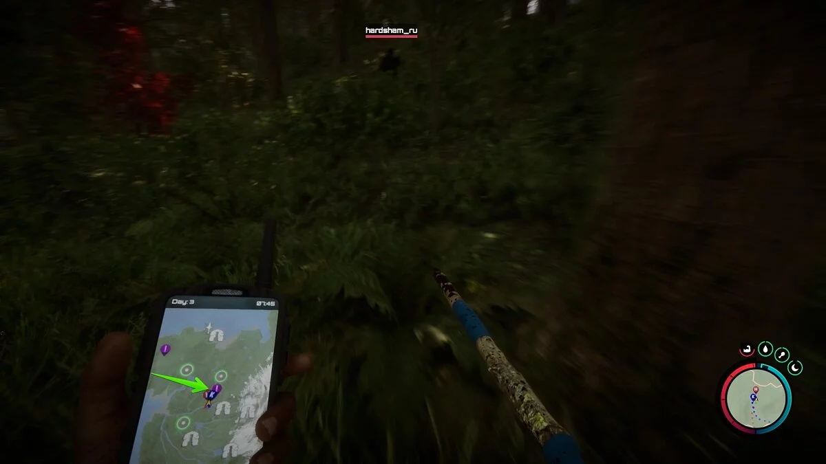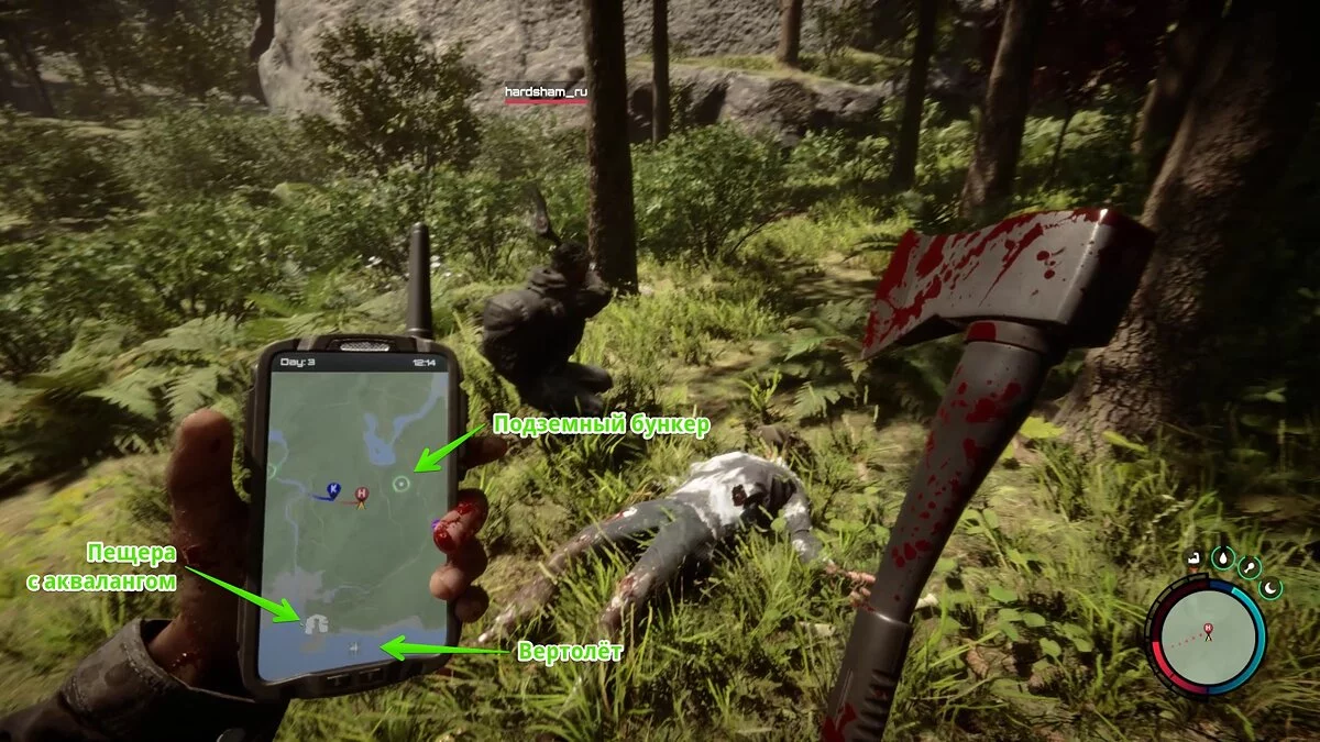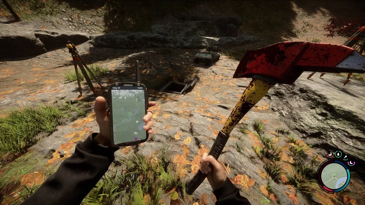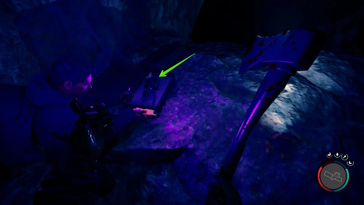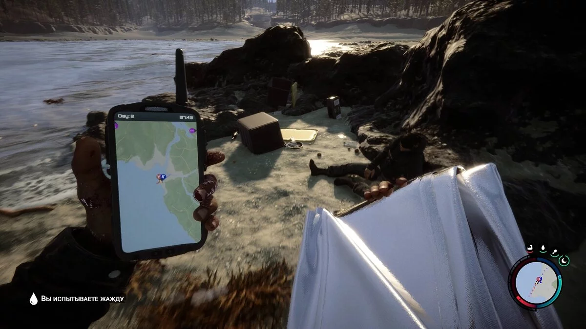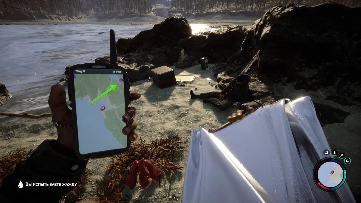 Обыщите труп и заберите второй GPS-трекер. Также мы рекомендуем осмотреть местность неподалёку от него. Некоторые игроки сообщают, что находили здесь простой фонарик.