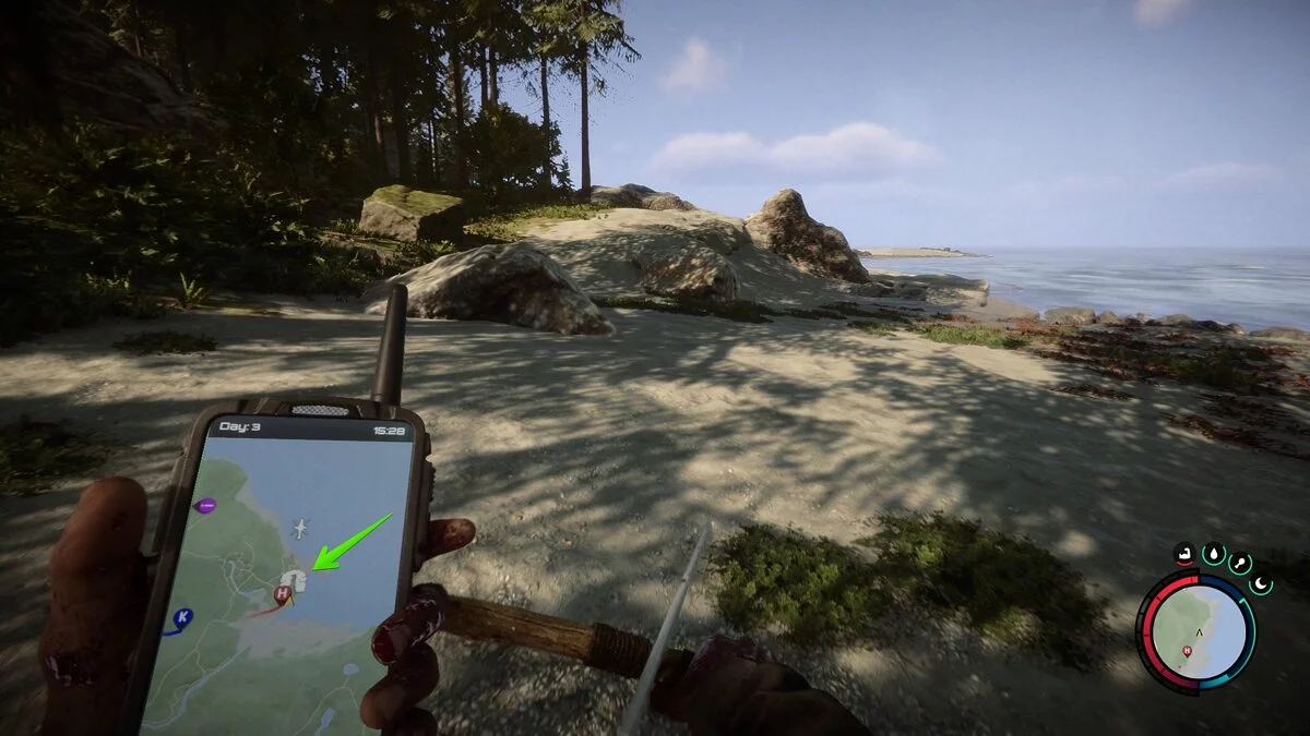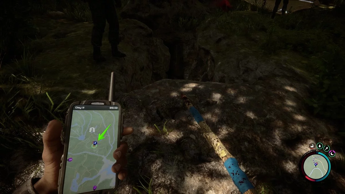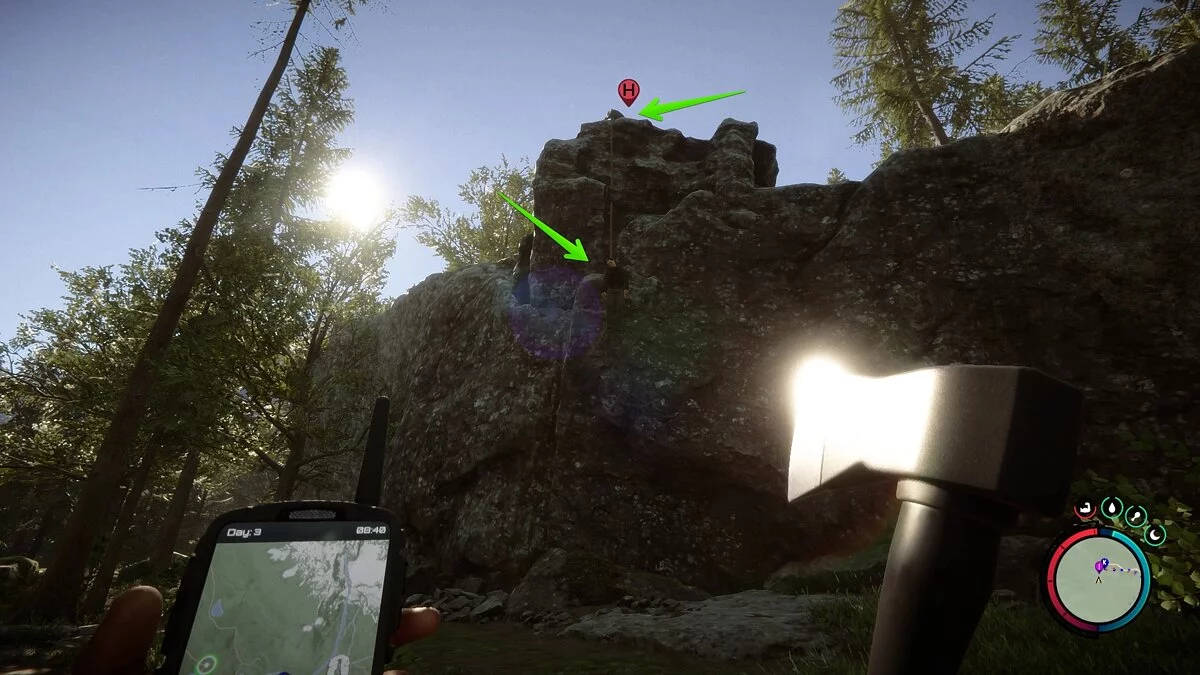 В Sons of the Forest первым делом вам нужно будет отыскать три маячка. Все они подсвечены фиолетовыми маркерами на вашем GPS. Добраться до двух из них довольно просто, но третий можно забрать только при наличии лопаты. Поэтому вам придётся сперва осмотреть несколько пещер, найти тросомёт и лопату, лишь затем осматривать маркер с третьим маячком.