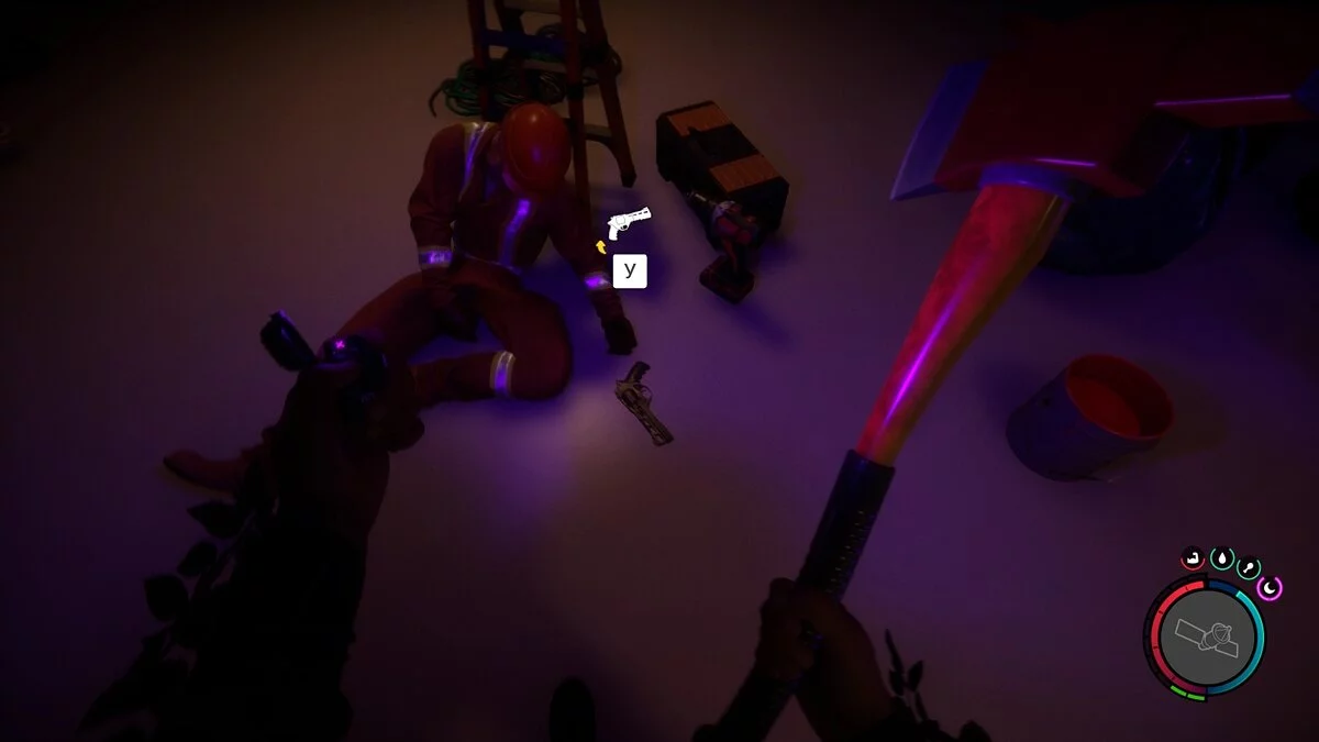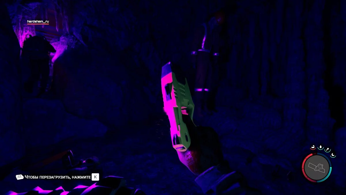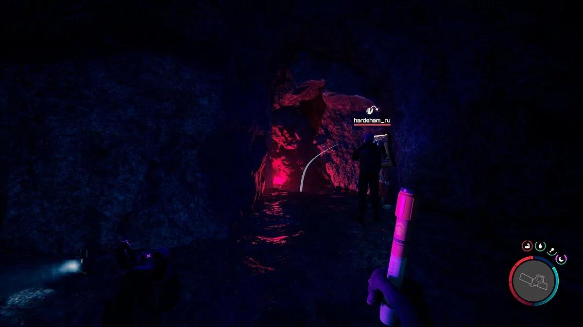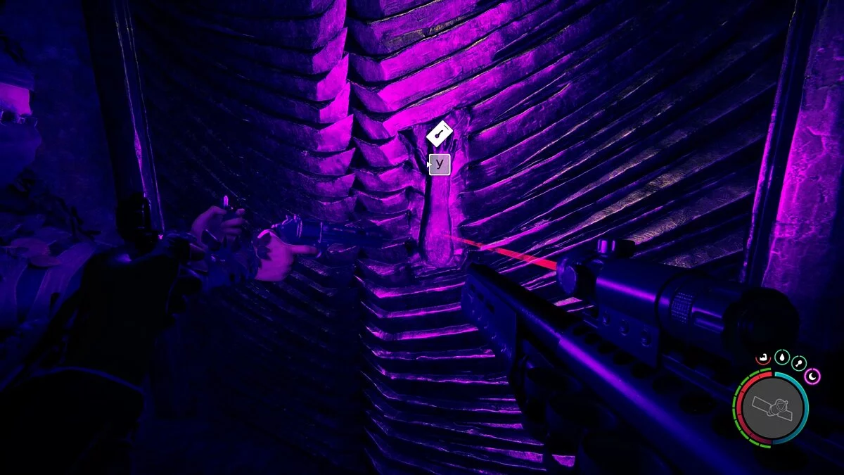 Мы рекомендуем вернуться обратно в пещеру и осмотреть вторую развилку, которая ведёт в правую часть подземелья. В тупике вы найдёте труп, подвешенный к потолку, у которого можно забрать шокер.