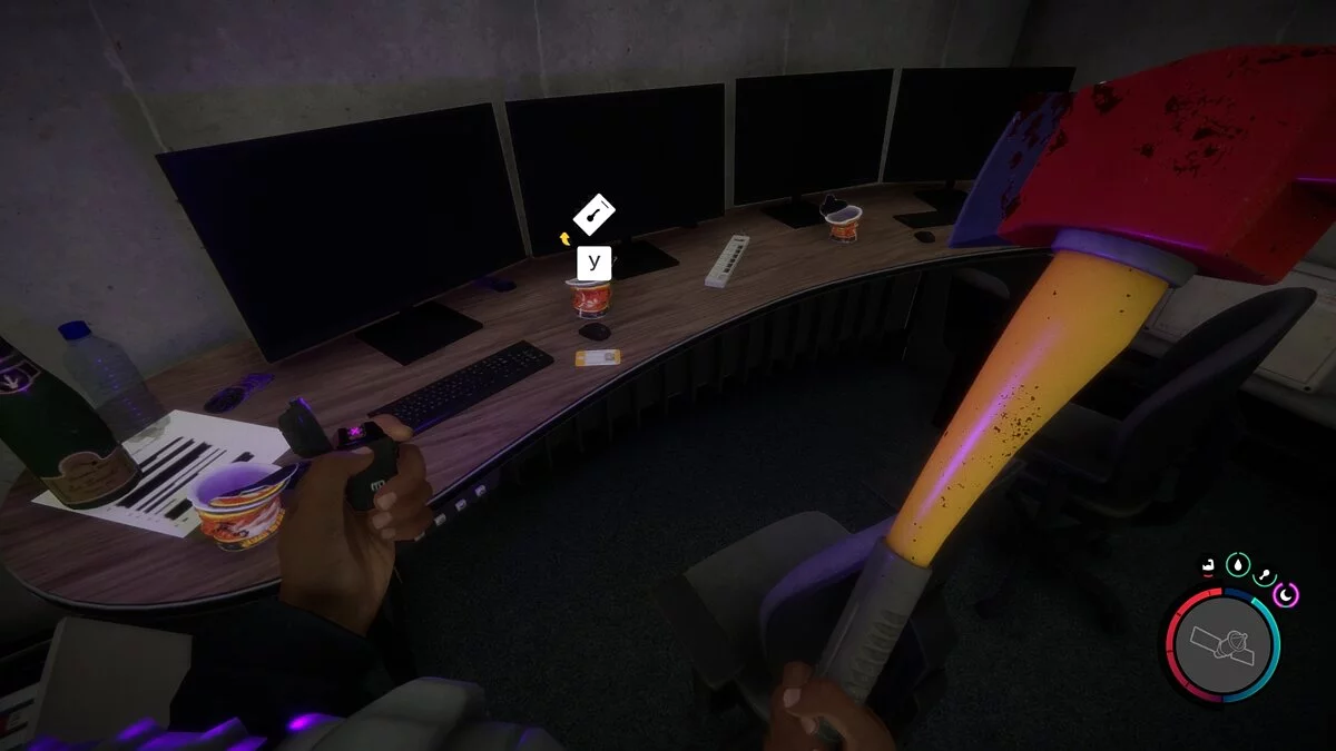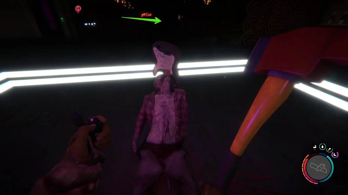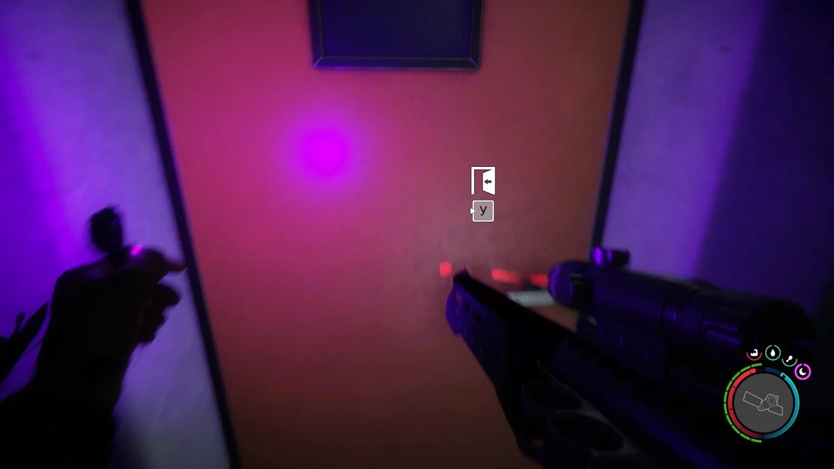 Пройдите через спортзал в комнаты отдыха. Внутри будет несколько монстров. Разберитесь с ними и осмотрите помещение на наличие полезных припасов. Доберитесь до бара. Пройдите мимо мужчины с гитарой во рту и изучите столики для посетителей. На дальнем столике справа лежит синяя ключ-карта.