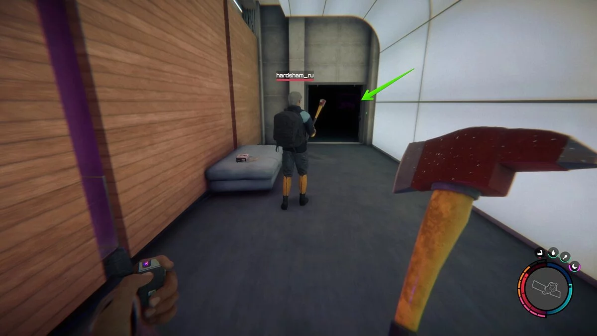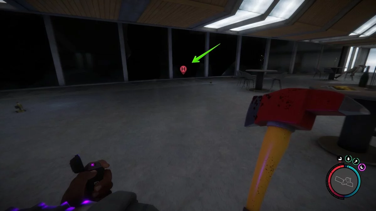 По пути мы рекомендуем посетить точку интереса (зеленый маркер). Такие точки необходимо будет осматривать и по сюжету, но конкретно в этой вы найдёте 3D-принтер — очень полезный предмет. Подробнее о нём мы рассказали в этом гайде.