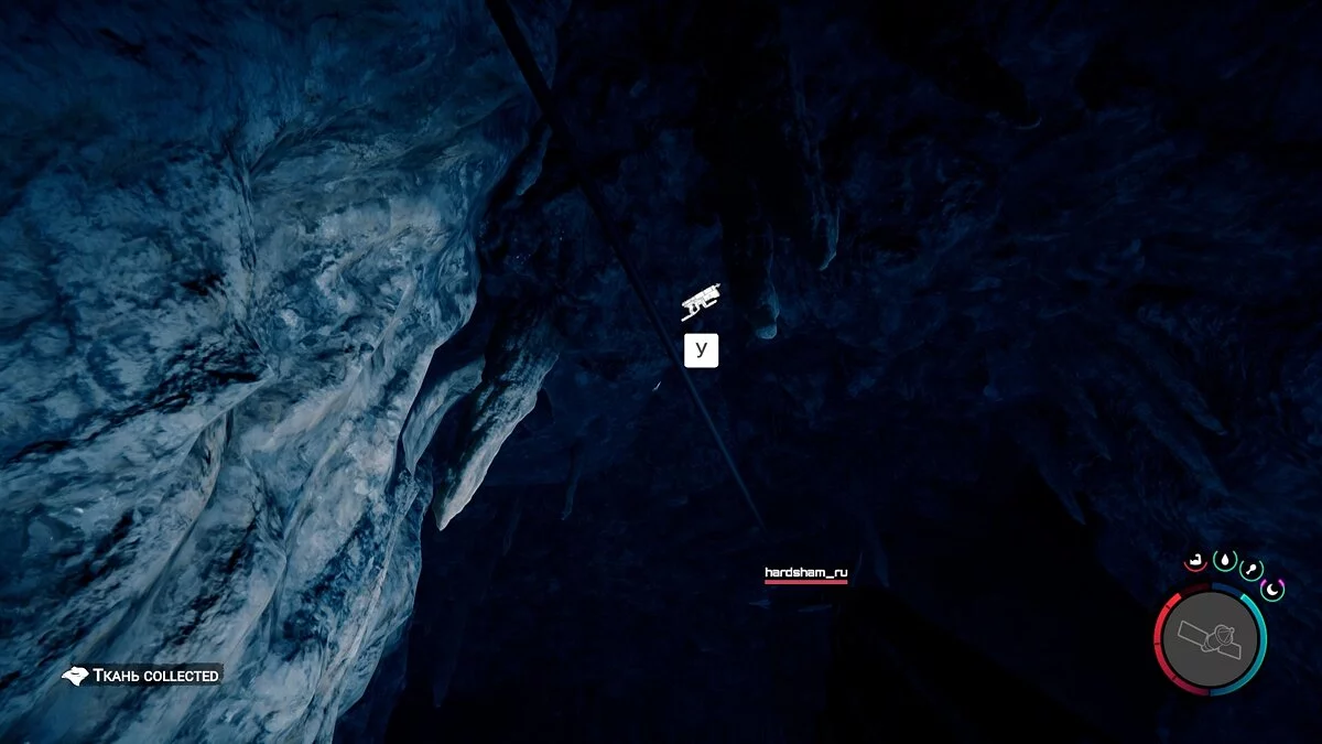 Ещё чуть дальше вы попадёте в большую штольню с несколькими врагами. Также избавьтесь от них и держитесь левой стороны. В самом конце пещеры вы наткнётесь на обрыв. Здесь же будет лежать чемодан с тросомётом.