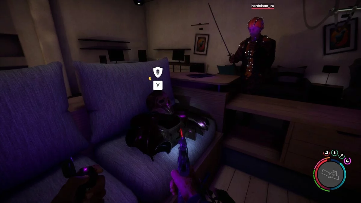 После видеоролика вы сможете полностью осмотреть подземный комплекс и найти полезные предметы, катану, пистолет и фонарь для пистолета. Последняя нужна для открытия двери в финальном бункере.