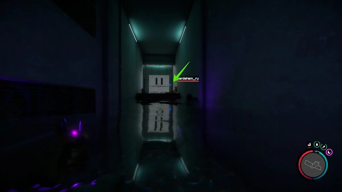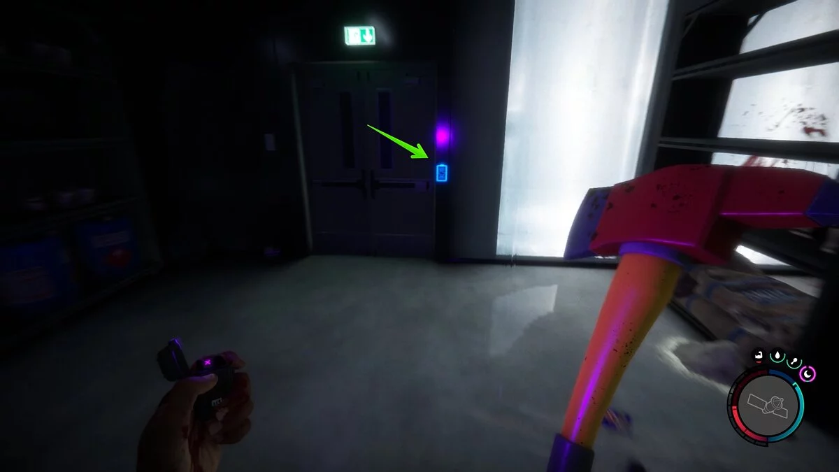 С этого момента игра не даёт никаких подсказок, куда нужно следовать по сюжету. Но так как вы уже отыскали две ключ-карты, останется лишь найти нужные двери, где их можно применить.