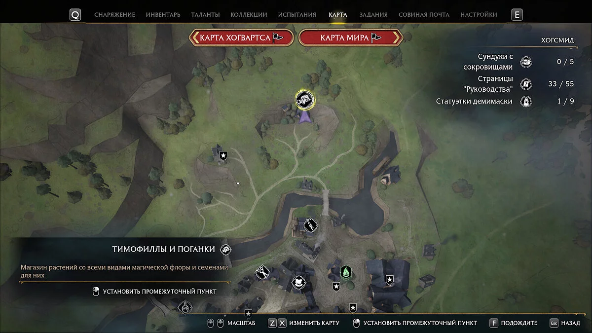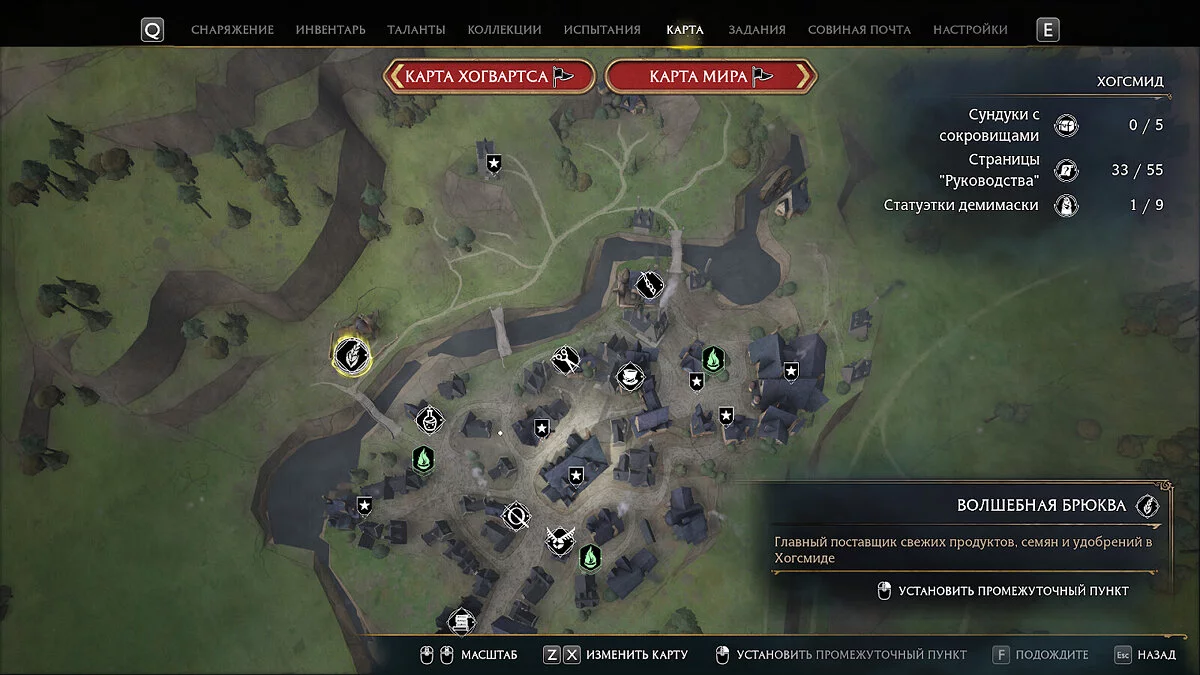 Кроме того, по карте расположены странствующие торговцы, у которых можно купить «базовый набор волшебника», состоящий из листьев бадьяна, сладкой мальвы, лунного камня и боевых зелий. Ещё у них можно приобрести метлу, поэтому время от времени заглядывайте в эти лавки. Расположение всех магазинов можете посмотреть на скриншотах ниже.
