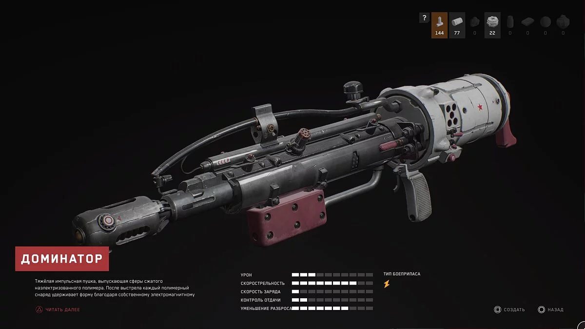 Электро. Актуален в начале игры, пока вы не скрафтите Доминатор. Но за это время вы успеете понять, как работает этот вид вооружения в Atomic Heart.