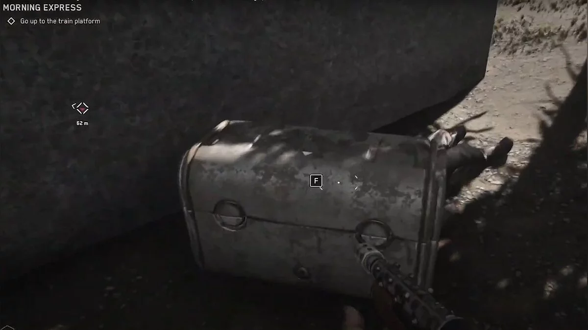 Когда вы окажетесь в деревне, найдите деревянный дом с цифрой «3» и надписью «Продукты». Взломайте дверь и убейте робота. В ящике вы найдёте чертёж патронов для Калаша.