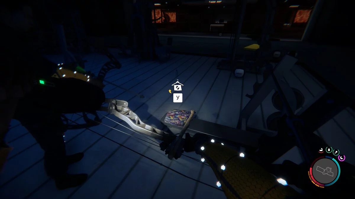 Примените VIP-карту Вирджинии, чтобы открыть доступ к спортзалу и комнатам отдыха. Нас интересует именно спортзал, поскольку на одном из спортивных тренажёров лежит одежда.