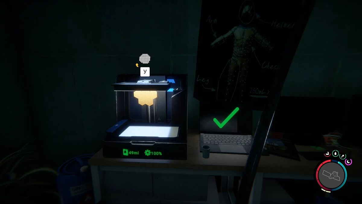 Для создания защиты понадобится много ресурсов, а также специальная техноткань. Последнюю можно изготовить на вышеупомянутом 3D-принтере. Создание каждого ресурса потребует 250 мл смолы.