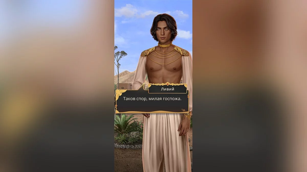 Примечание: Далее будет 3 смены гардероба. Если вы выберете любую комбинацию одежды за алмазы (платье, причёска и макияж), то позже Ливий сделает вам комплимент, и вы получите (+2 Признание