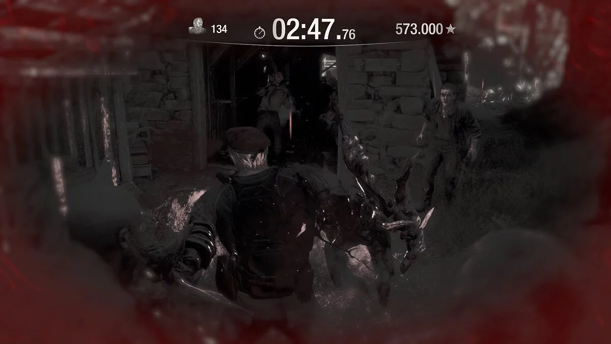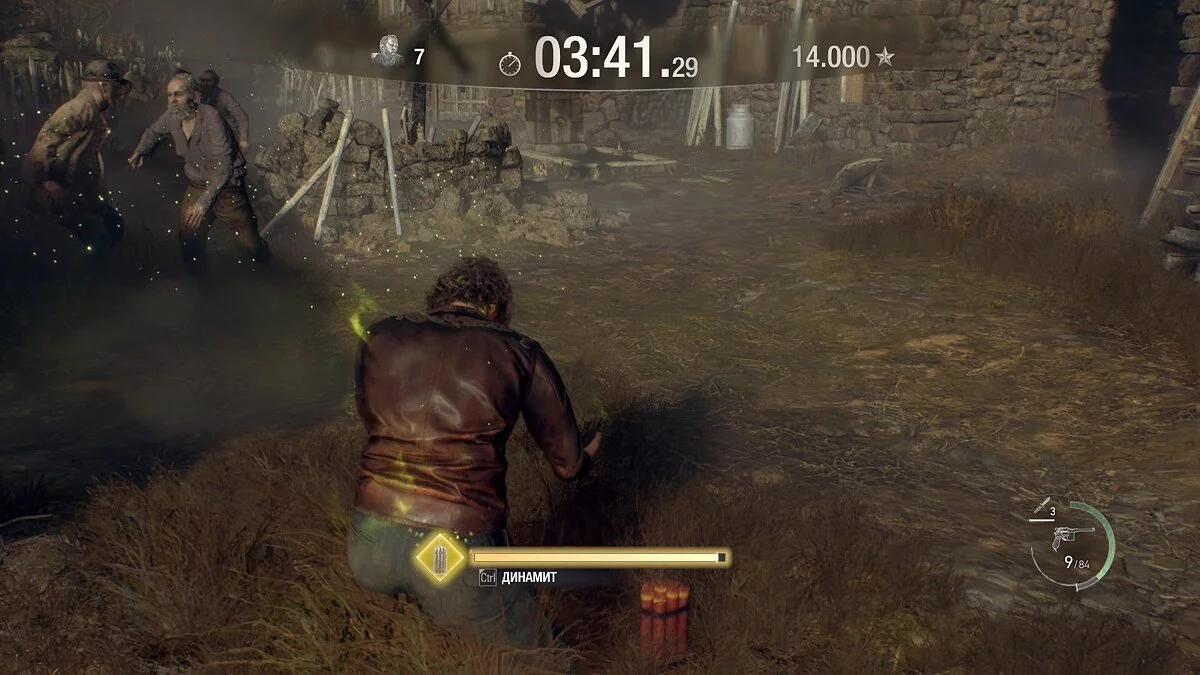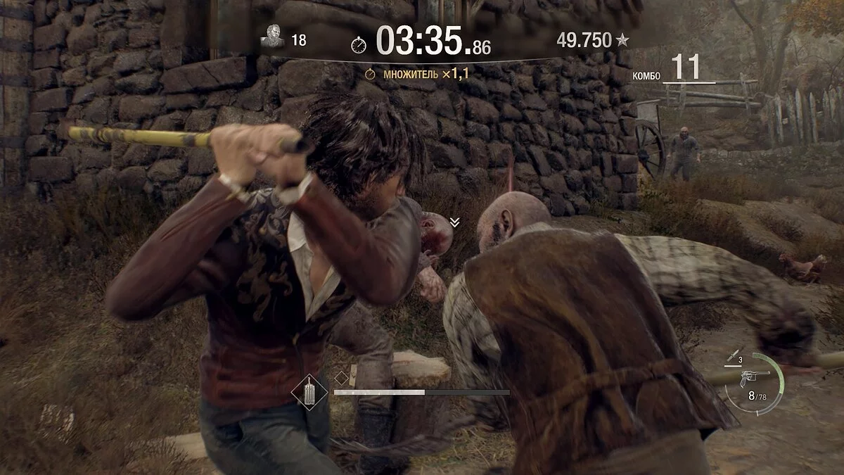 Теперь перепрыгивайте через ограду и бегите в амбар слева. Не стреляйте по врагам, иначе комбо сбросится, а вы не сможете получить максимальное количество очков!