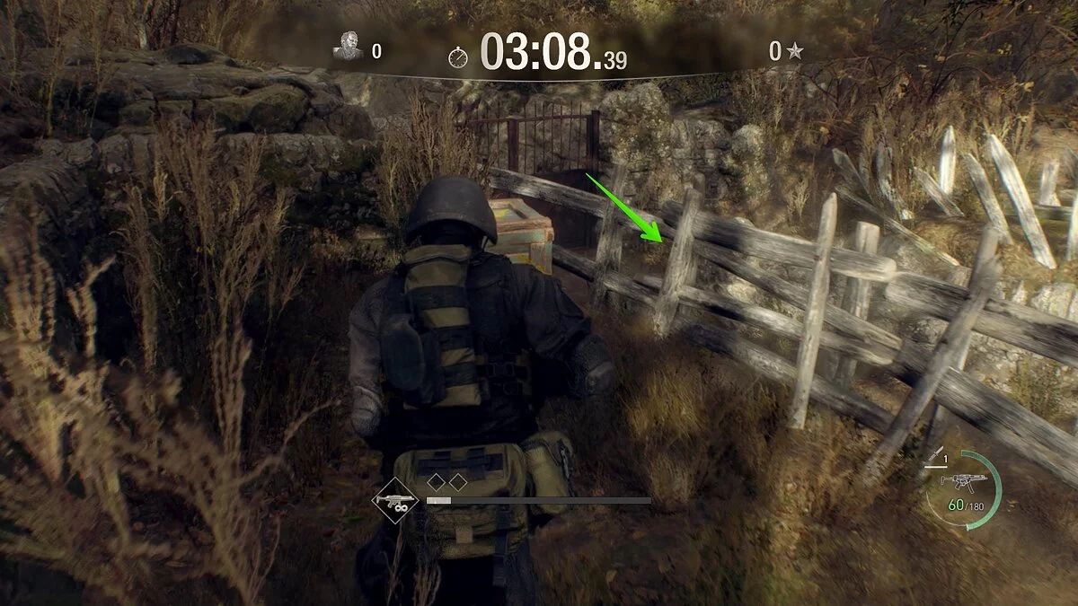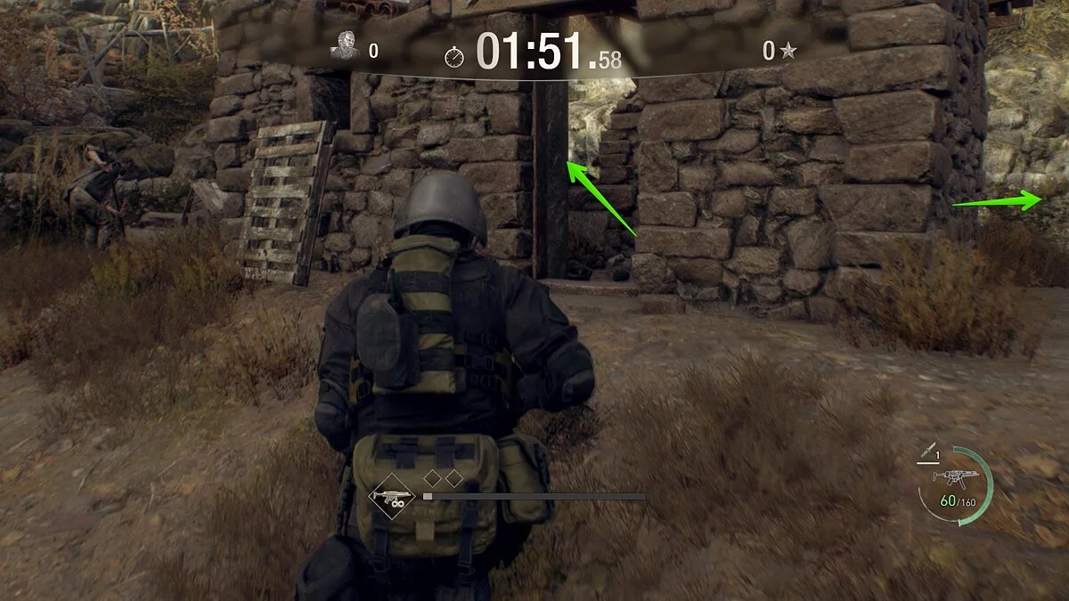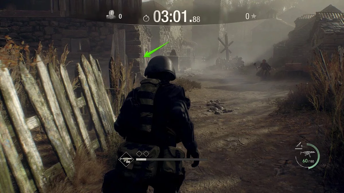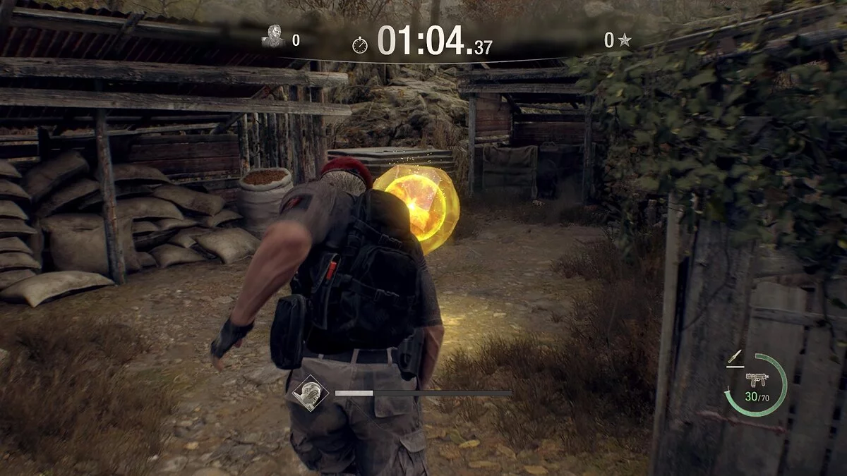 В отличие от деревни, в этой локации вам не нужно сразу собирать все шары, так как они разбросаны в ключевых местах, куда вы в любом случае придёте, чтобы разобраться с врагами. В первую очередь вам нужно собрать полезные боеприпасы и избавиться от катапульт, которые, безусловно, будут мешать во время прохождения. Для этого на старте подберите гранату и разбейте две бочки. Здесь же есть враг — убейте его и избавьтесь ещё от нескольких бочек. Сразу позади него также два зомби.