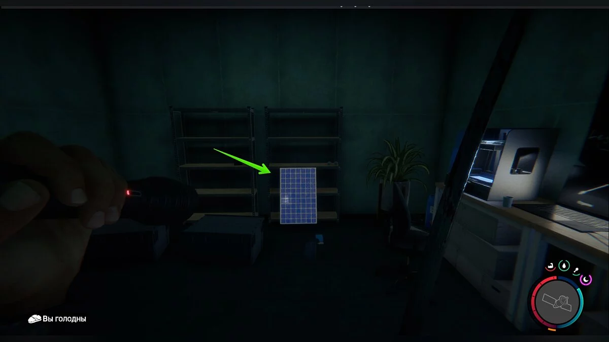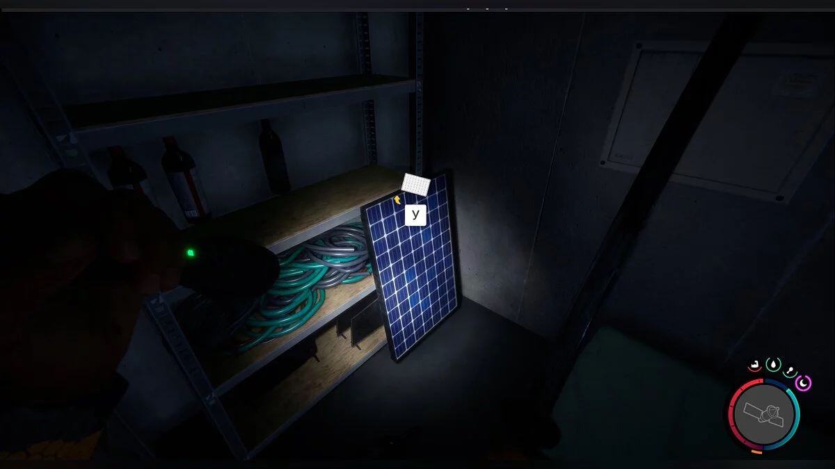 В инвентаре солнечные панели хранятся в правом верхнем углу, рядом с верёвками, брезентом и крюками.