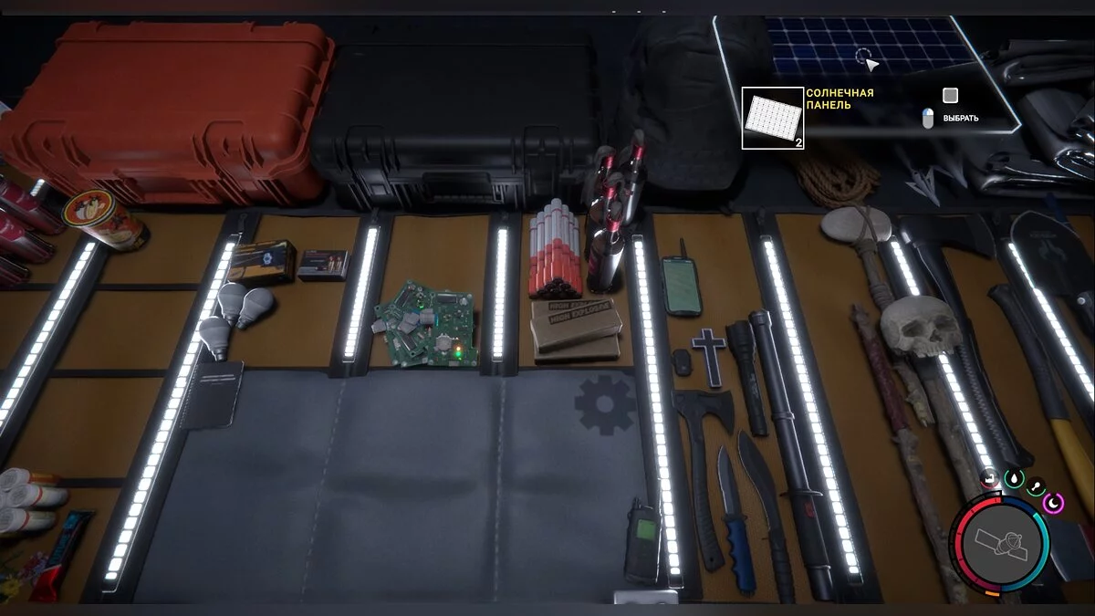 Игрок вправе переносить три солнечные панели в инвентаре за один раз. Поэтому, если вы хотите запастись подобными устройствами, захватите с собой друга, сохранитесь на месте спавна панелей, соберите предметы и загрузите последнее сохранение. После загрузки они снова появятся на своих местах, а вы сможете отнести их в лагерь.