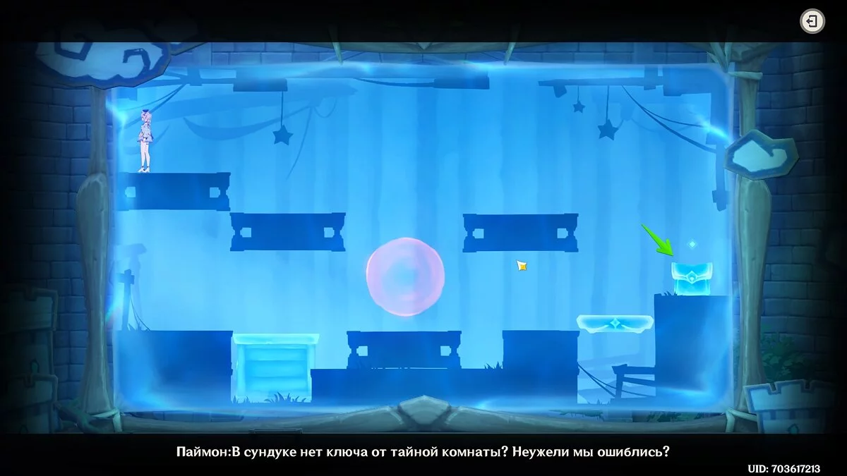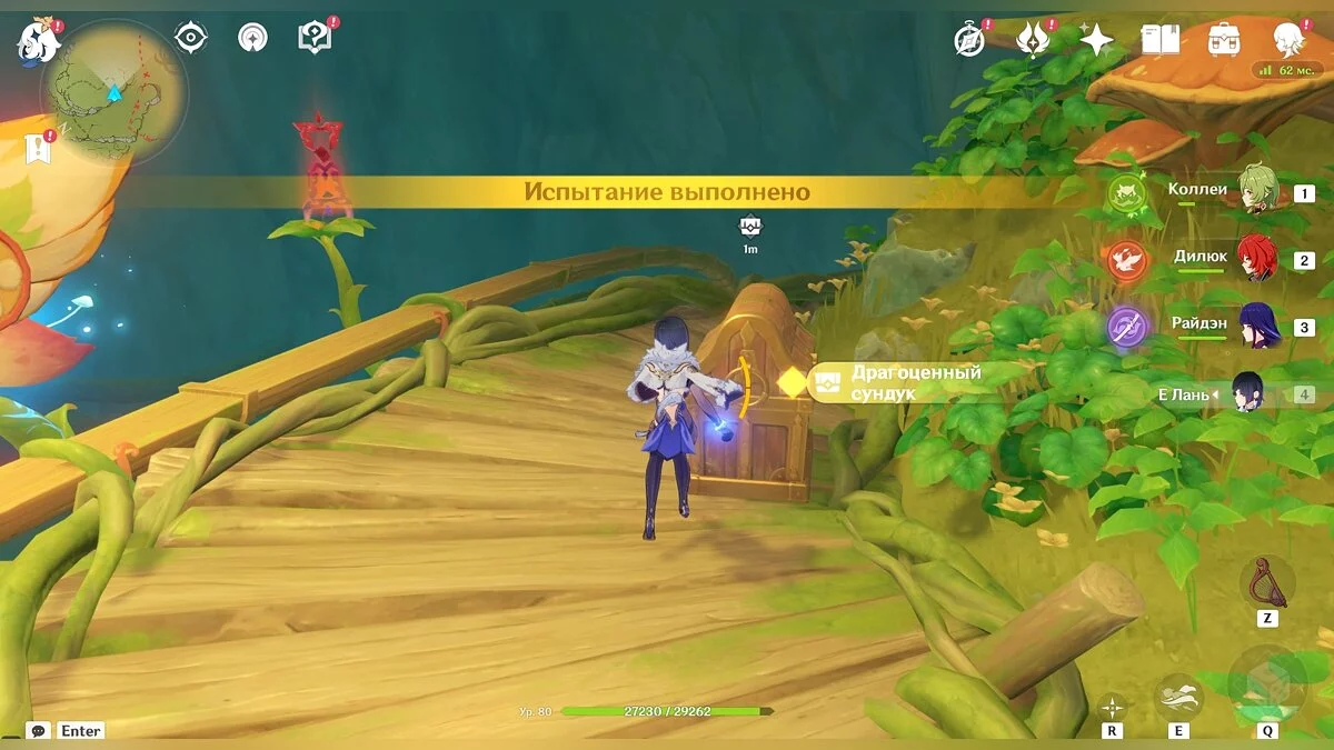 После вам нужно попасть к сундуку в центре. В этот момент испытание завершится, а Гидро эйдолон поможет добраться до него.