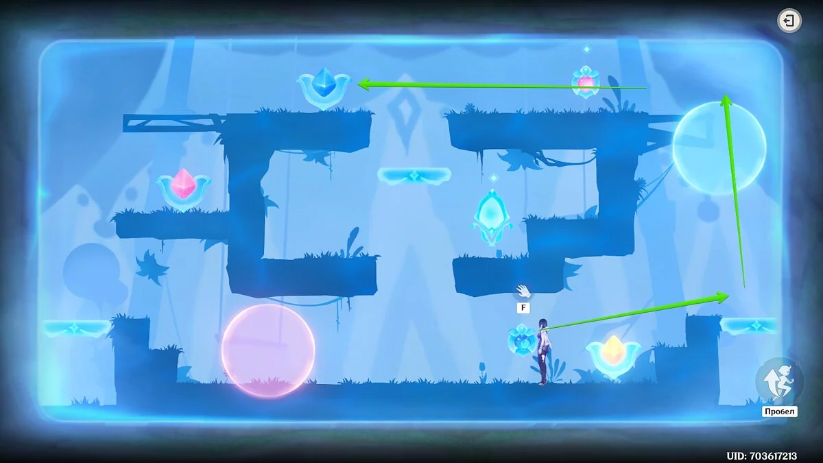 Вы можете взаимодействовать с капелькой, которая находится неподалёку. Она укажет правильный путь. Или воспользуйтесь нашими скриншотами.