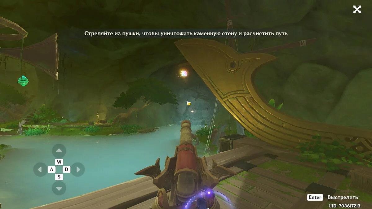 Когда завершите испытание, осмотрите богатый сундук и используйте пушку, чтобы открыть проход и получить драгоценный сундук.