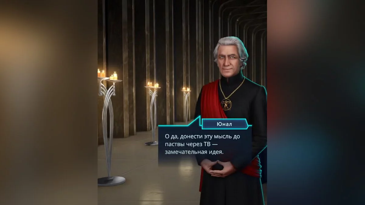 Информация о том, что Синод блокирован, вызвала панику среди советников. Некоторые даже попытались убежать, но Марк предупредил, что при необходимости он готов применить силу. Норьега спросил, уверен ли Мартен в своих действиях. Ваша героиня выразила уверенность в действиях приора и решила поговорить с хозяином дома.