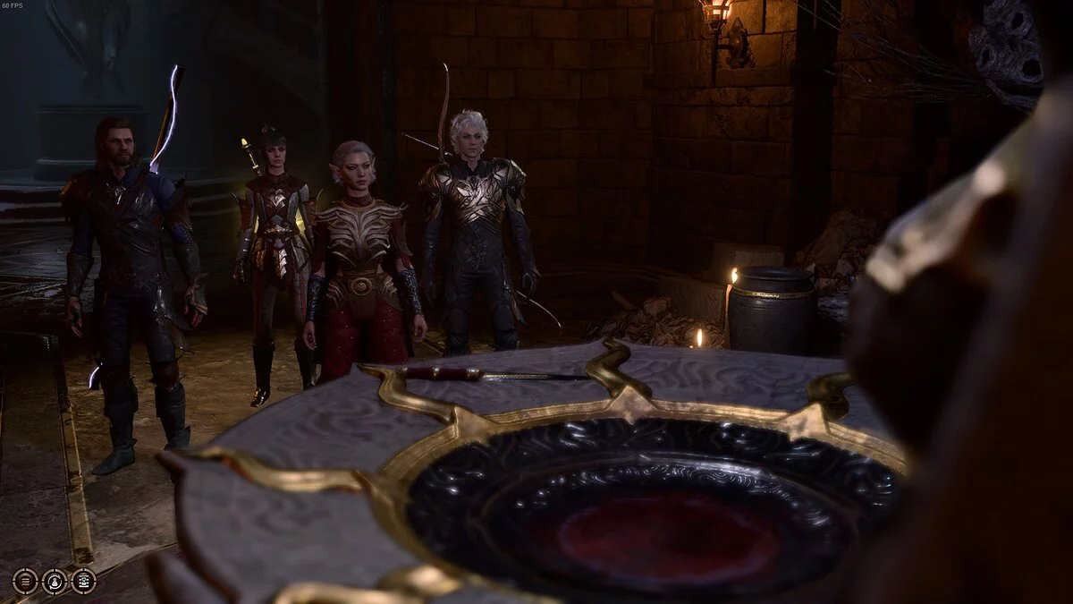 Внутри вы увидите ещё 3 статуи богини Шар с точно такими же табличками, которые при взаимодействии предложат вам пройти испытание (понадобится бросить кубы). При удачной проверке вы получите бафф +5 к одной из трёх характеристик: интеллект, мудрость и харизма. При удачном прохождении испытаний на всех статуях, бафф на три характеристики будет висеть на вас до следующего долгого отдыха.