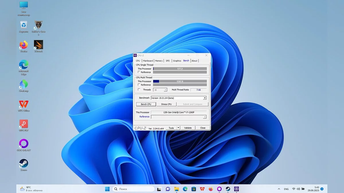 - Процессор: Intel Core i7-1260P;