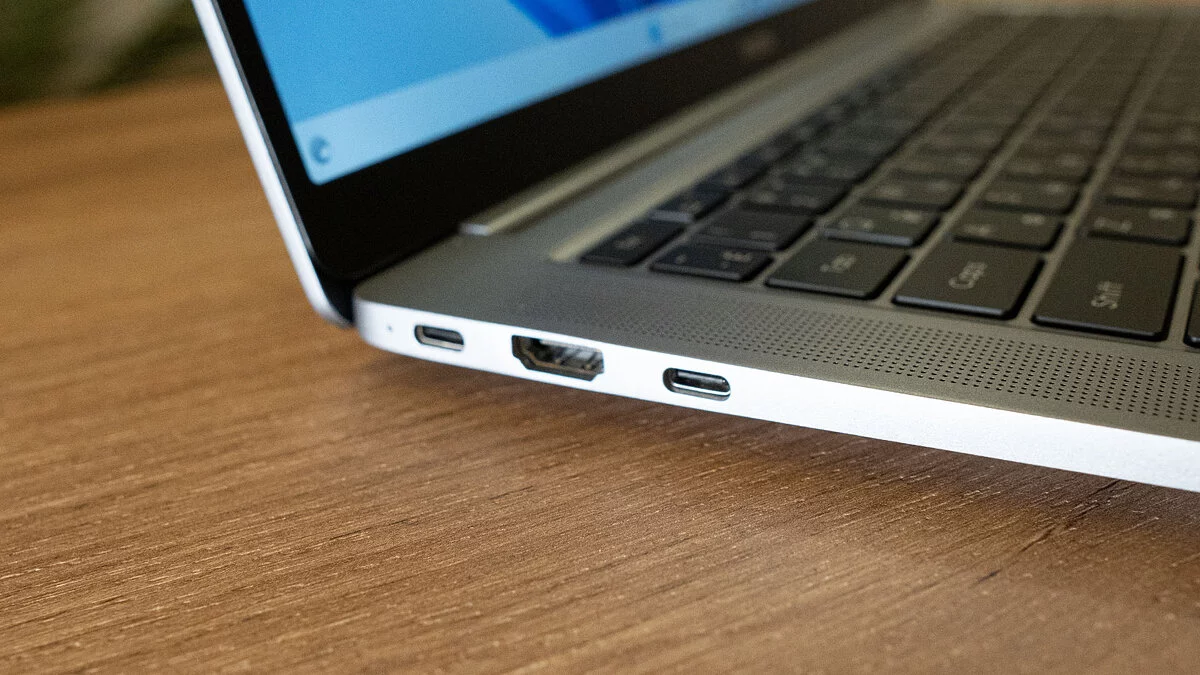 На левом краю размещён порт USB 4.0 Type-С с поддержкой DisplayPort и обратной зарядки. Рядом с ним находится индикатор зарядки, разъем HDMI и USB 3.1 Gen2 Type-С с поддержкой Power Delivery. Thunderbolt, к сожалению, нет.