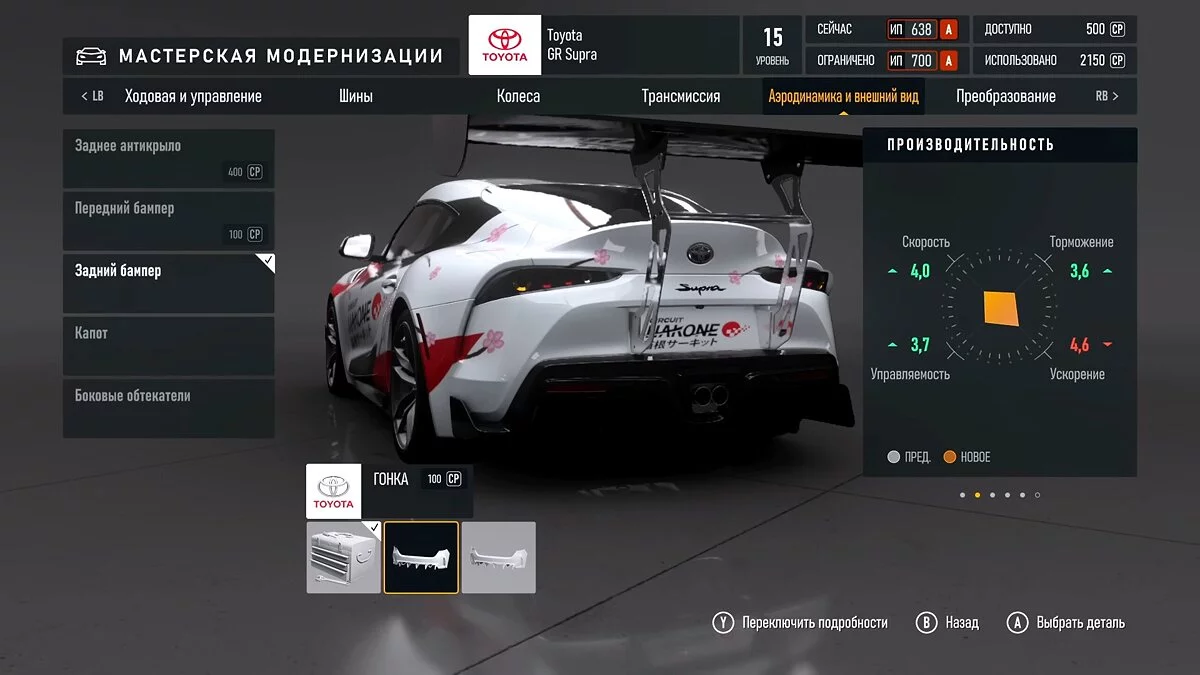 Более спорным решением может стать прокачка каждой отдельной машины. Тюнинг теперь не доступен изначально, как в седьмой части. Хочется улучшить машину? Катайтесь и побеждайте. Мы не может однозначно назвать эту прогрессию плохой. В первую очередь она мотивирует изучать автомобили и ценить их. В той же GT7 нам с ходу выдают целую вереницу тачек, и мы, не долго думая, берем ту, что помощнее. В Motorsport контент выдается порционально. Особая награда за укрощение менее культовых авто. Тем не менее этот аспект отпугнет игроков, которые хотят с самого начала играть на определенных авто и не возиться с прокачкой того, на чем в дальнейшем не будут кататься.
