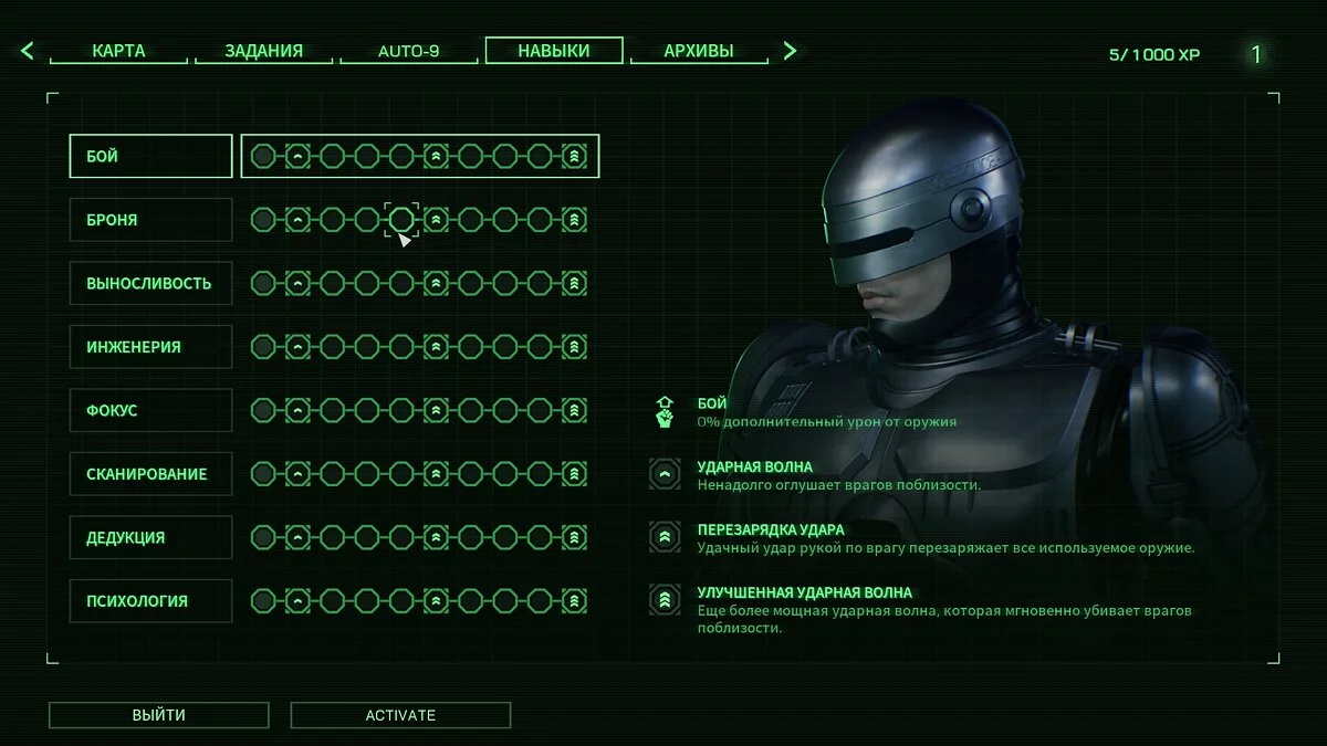 Все наиболее полезные улучшения станут доступны на первом-втором уровне, они полностью связаны с перестрелками. Можно ненадолго замедлить время, усилить броню или использовать световой взрыв (после прокачки шоковую волну). В целом без навыков можно и обойтись, но с ними бандиты отлетают побыстрее. И здесь мы вплотную подходим к самому слабому, что есть в игре — шутерной части.